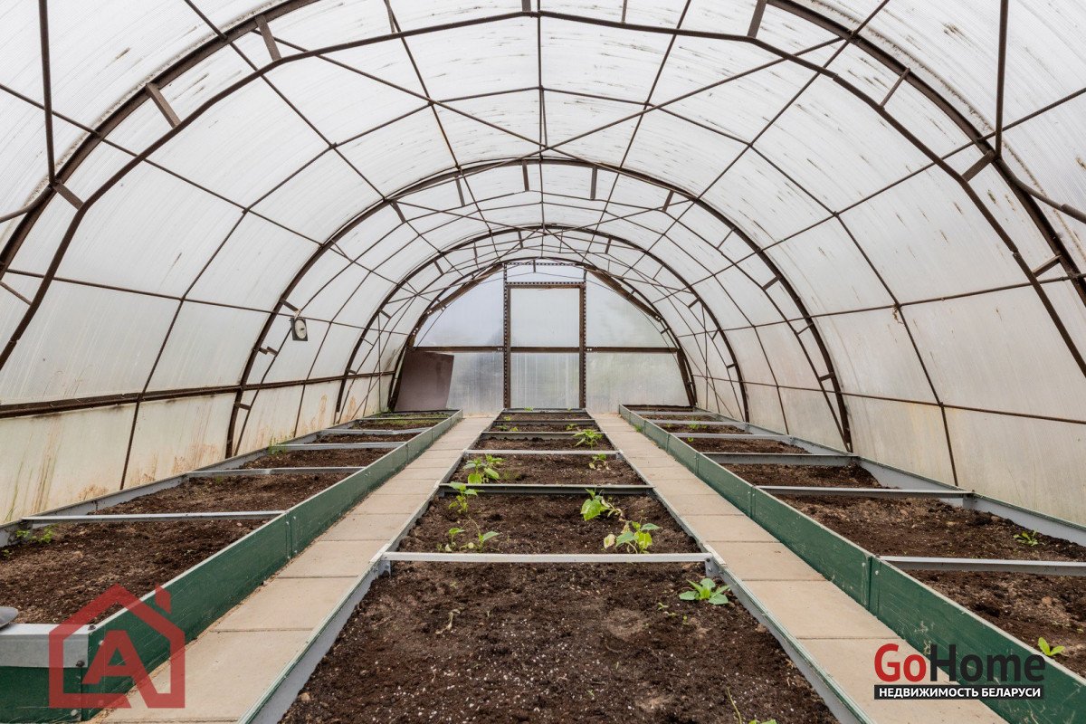 Участок имеет правильную форму и обширную территорию. На нем расположены дровяной сарай, теплица, просторная баня с отдельной террасой и комнатой для отдыха. Также на участке есть плодоносящий сад и виноградник. Вода распределена по всему участку.