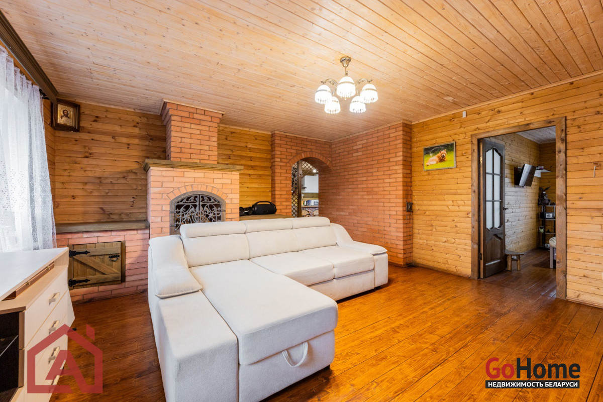 В доме установлена скважина для воды, отопление осуществляется печное и электрическое, имеется интернет, а также установлены датчики для обеспечения безопасности. Планировка дома включает две спальни, просторную гостиную с камином, кухню и санузел. Из застекленной веранды открывается восхитительный вид. На цокольном этаже находятся кладовка, погреб, техническое помещение для установки котла, а также комната для отдыха с бильярдом.
