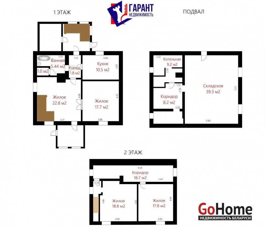 Дом общей площадью 177,8 м2 расположен на ровном участке в 25 соток (Статус земли – пожизненное наследуемое владение). Дом выполнен в трех уровнях: цокольный этаж и два этажа жилых. Для удобства, в доме есть два входа, парадный и хозяйственный.