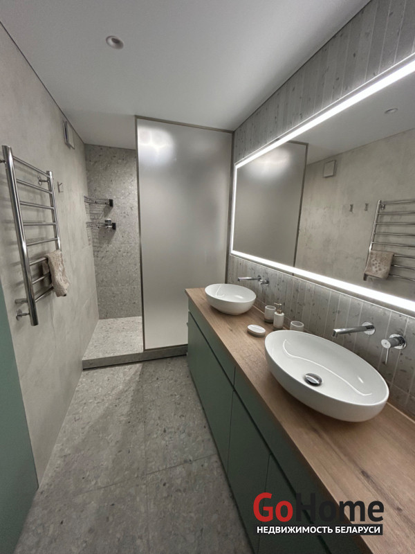 Предусмотрено кондиционирование воздуха, регулируемое отопление, подогрев полов. Бытовая техника: холодильник, СВЧ, электроплита с индукционной варочной панелью, посудомоечная и стиральная машины, телевизоры,бойлер, пылесос.