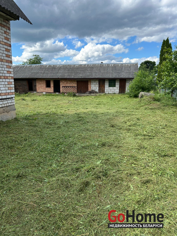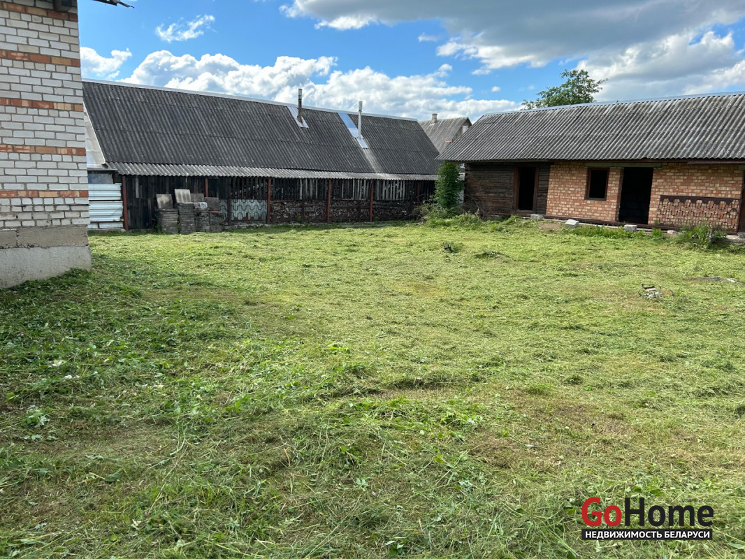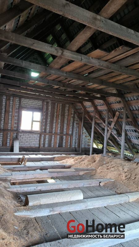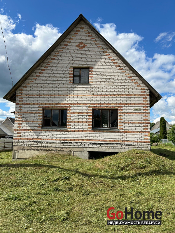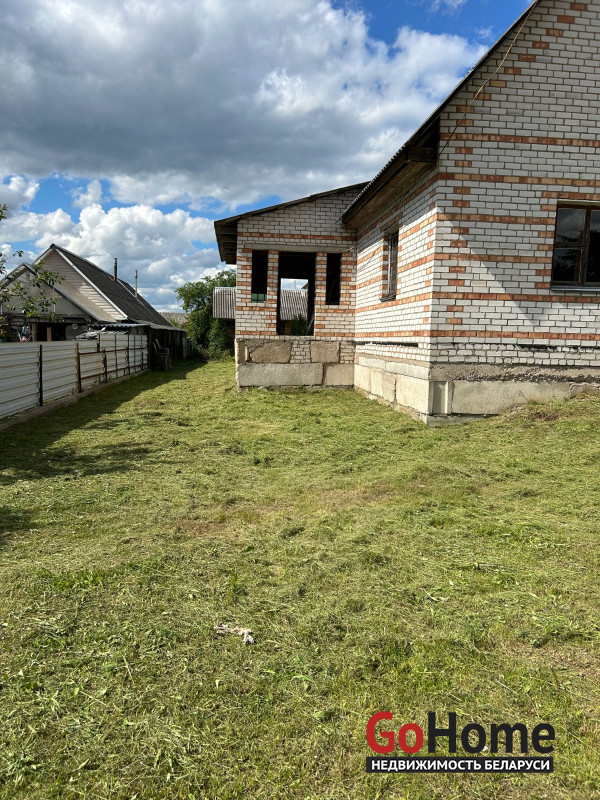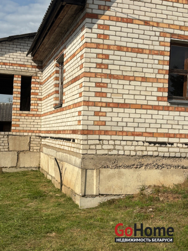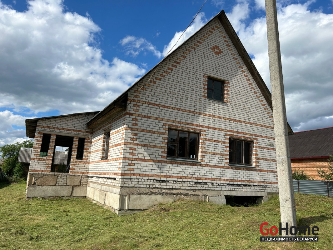 Дом находиться в незавершенном законсервированного капитального строения , общая площадь 164.5 кв. М, наружная площадь 134. Дом деревянный обложенный кирпичом , газ поведен до дома , на угол дома. Хорошее расположение , рядом больница , школа , озеро леса . Есть хоз постройки , подвал в доме. Внутри черновой потол с вырезанной дыркой на второй этаж. Провели оптоволокно до дома