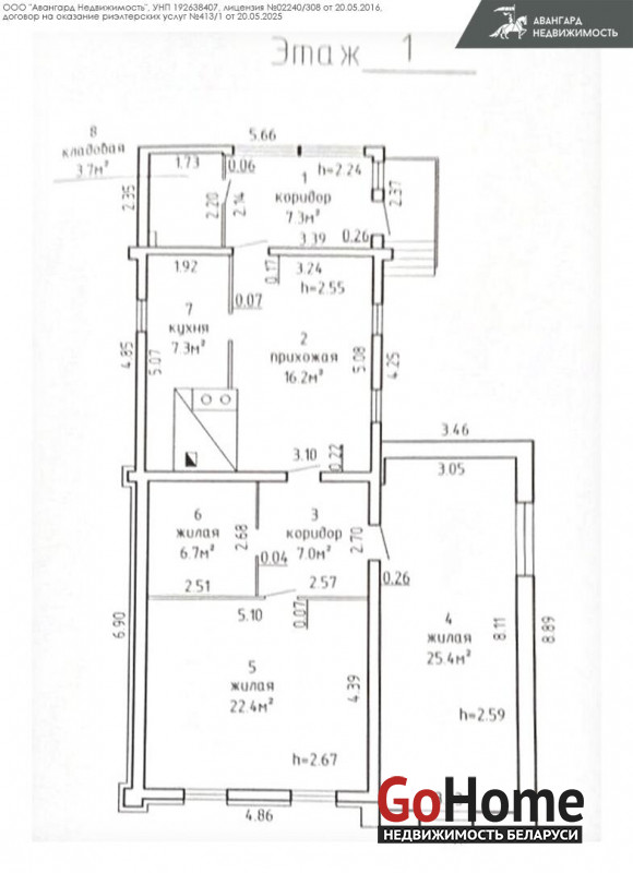 Дом расположен на возвышенности, с участка открывается замечательный панорамный вид. Есть плодовые насаждения.