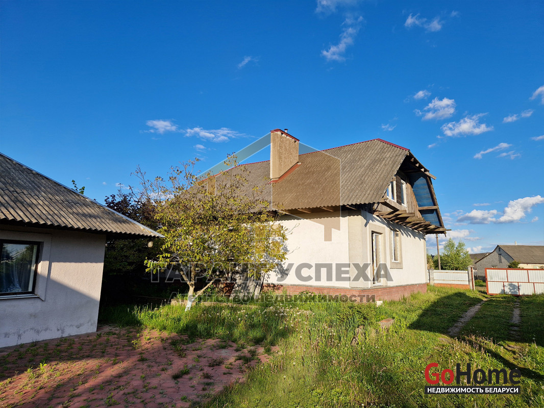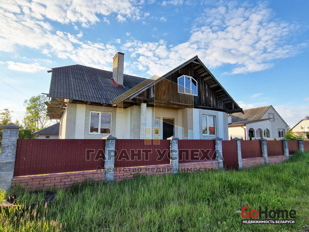 Дом построен из газосиликатных блоков, обшит 50 мм пенополистирола и покрыт декоративно-отделочным слоем, установлены окна ПВХ. Проект предусматривает 2 этажа, 4 жилые комнаты.