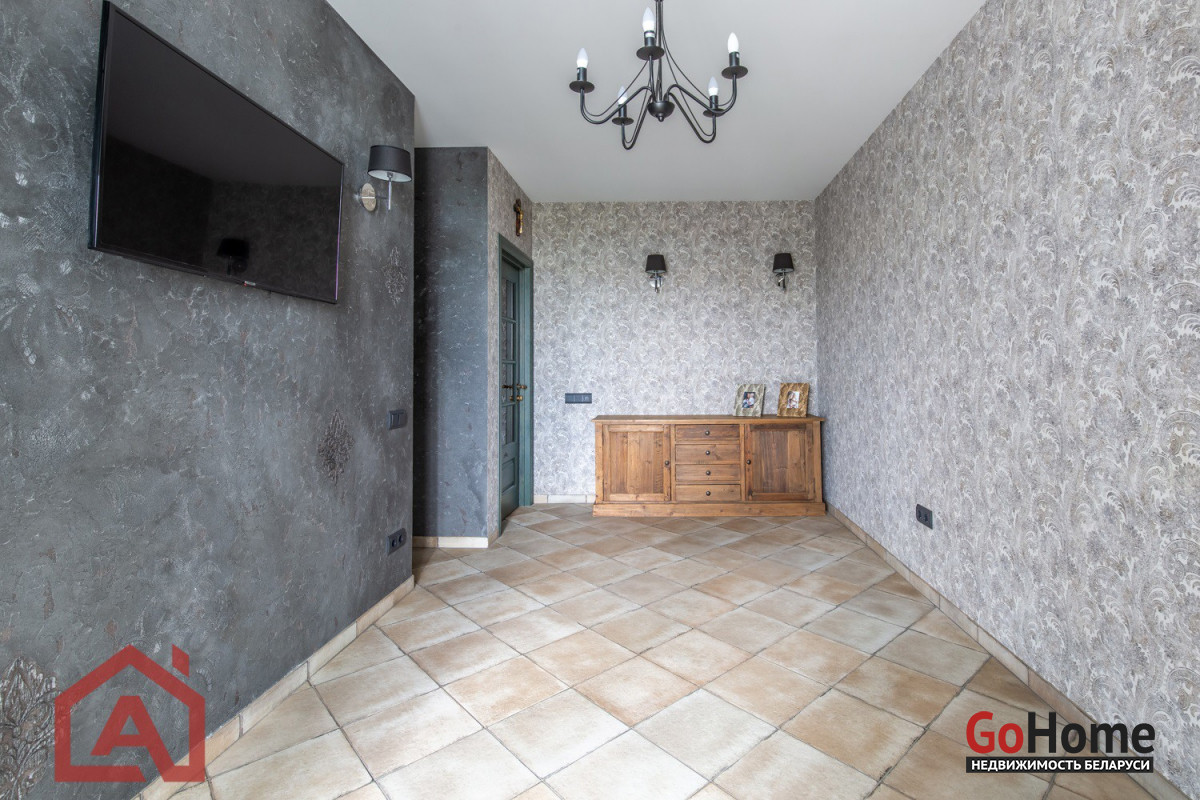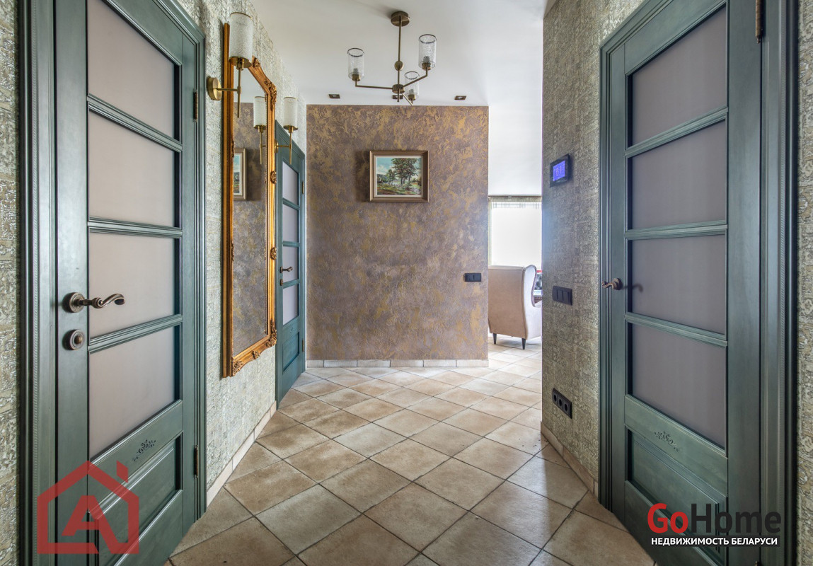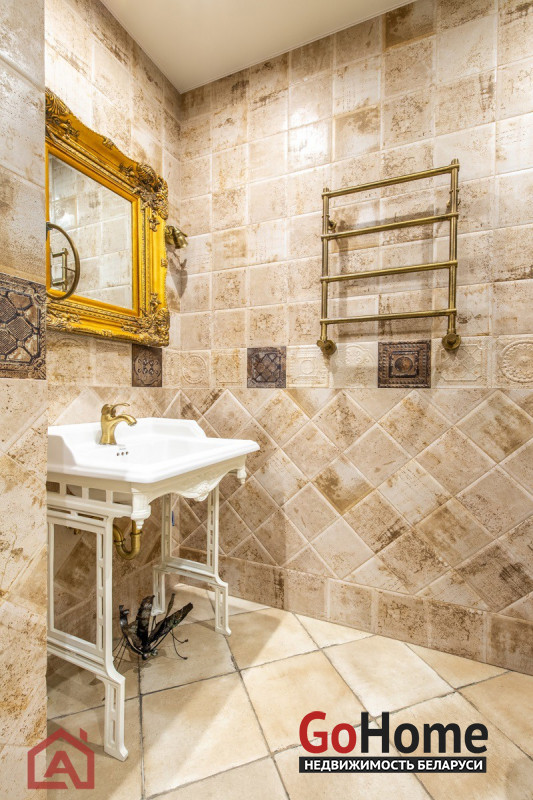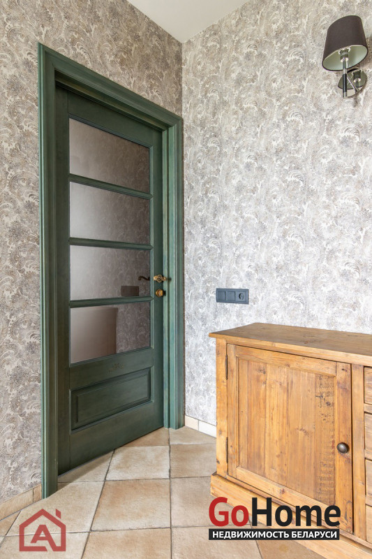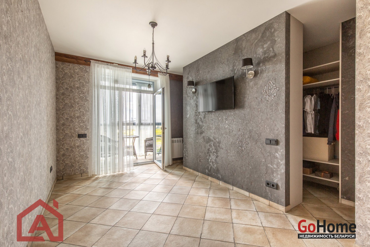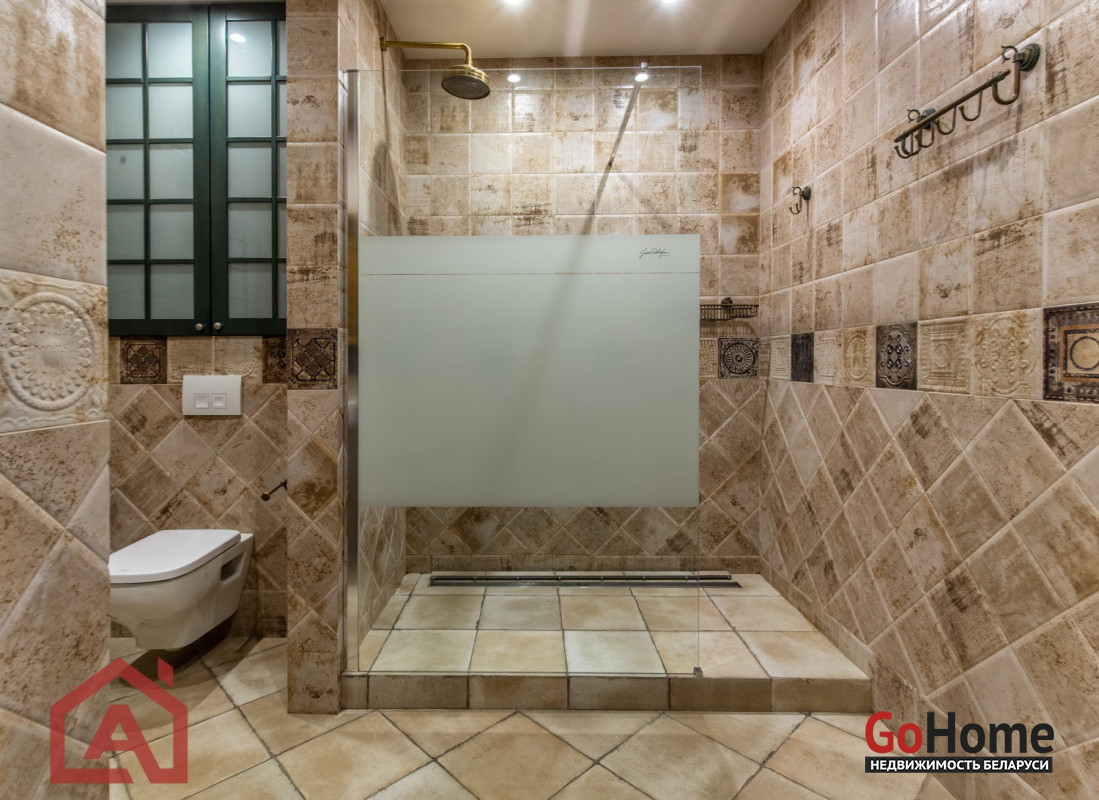 В квартире предусмотрено множество мест для хранения одежды, а также установлена дорогая сантехника из латуни. Стены оформлены дорогими сатиновыми обоями, а в спальне используется мешковина, создающая уютную атмосферу. Также по всей квартире разведена акустическая система Harman Kardon для отличного звучания.