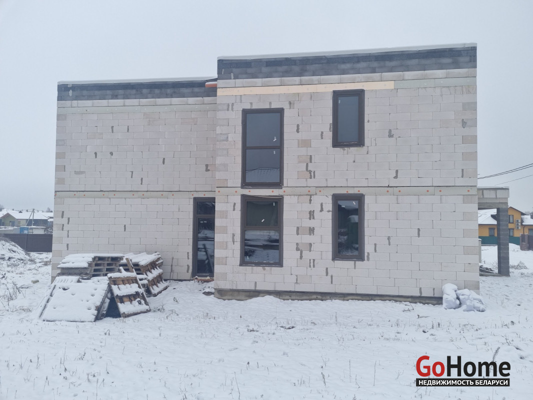 С/Т Водолей 2010, территория товарищества огорожена, въезд через шлагбаум,видеонаблюдение, широкие проезды(зимой чистят), много кто живет круглогодично.Центральный водопровод, газ на участке. Установлены качественные окна KBE 76 профиль с 50мм стеклопакетом и мульти стеклами,выход на терассу KBE PREMIDOOR с беспороговой системой.Высота потолков на первом этаже после чистовой отделки 3м,Высота окон на первом этаже 2.9м. На первом этаже большая кухня-столовая(78м)с выходом на терассу, кабинет(18.5м), гардеробная, котельная, 2 кладовые, тамбур, прихожая На втором этаже мастер спальня(49м) с балконом, 2 детские комнаты с сан.узлами, 1 гостевая комната, кладовая. Разведена канализация, вода введена в дом, проложена труба для ввода электричества. Крыша балластнная мембрана FIRESTONE, навес/терасса мембрана. Есть проект по отоплению, электрике. Возможен обмен на квартиру в Минске