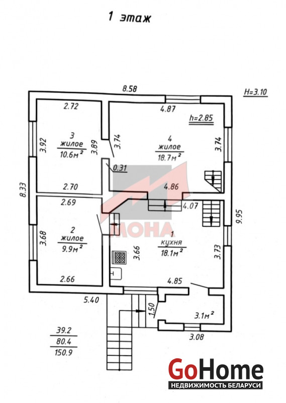 В доме на первом этаже 3 жилых комнаты и кухня, на мансардном этаже еще одна комнаты, просторный гостевой холл с выходом на застекленную лоджию. Хорошее состояние - окна стеклопакеты, все двери заменены на новые современные, в жилых комнатах сделан свежий ремонт.