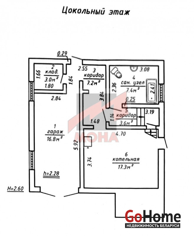 В цокольном этаже расположен санузел ванной и душевой кабиной, а также хозяйственные помещения и гараж.