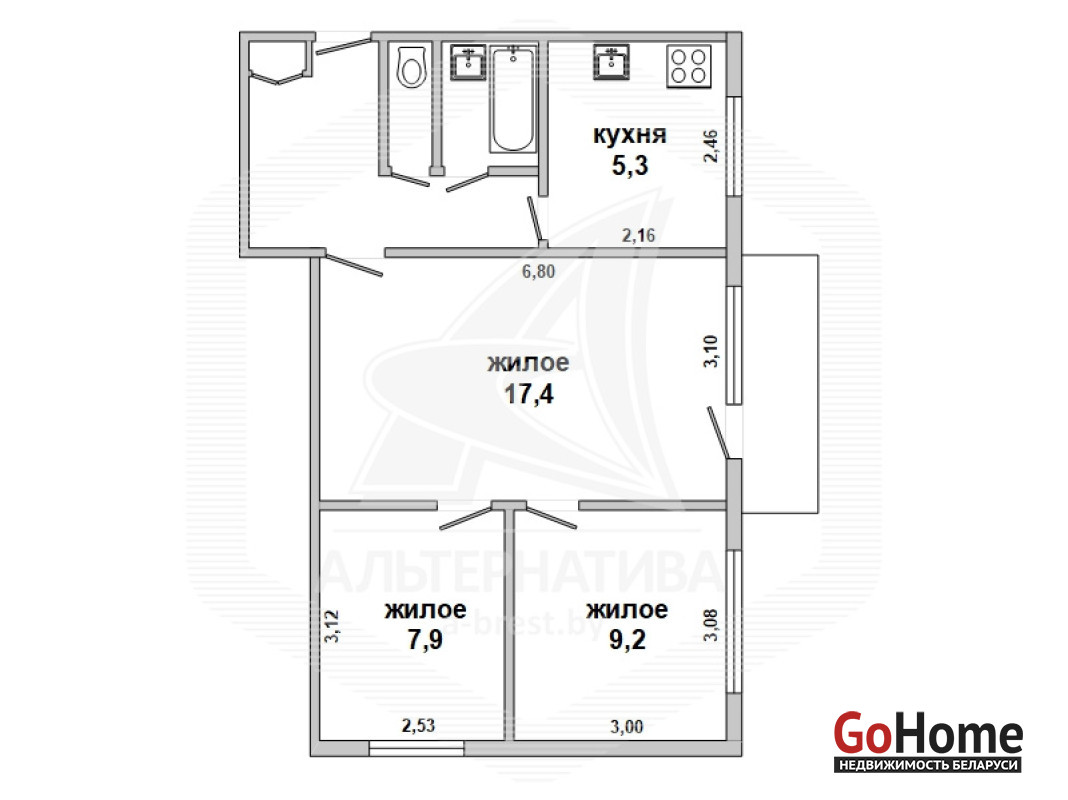 3-комнатная квартира, г. Брест, пр-т Партизанский, 1974 г.п., 2 / 5 панель, 50,6 / 49,7 / 34,5 / 5,31, санузел раздельный, балкон, подвал, стеклопакеты, деревянные межкомнатные двери, входная дверь металлическая, потолки - снежка, полы (положены на стяжку) - паркет и плитка (в кухне, в прихожей, в санузле плитка современного образца, заменена сантехника, заменен полотенцесушитель, ванна, домофон. В квартире частично произведен ремонт. Чистый подъезд. Дом расположен в глубине двора. Лот - 251025
