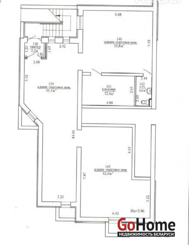 Просторное административно-торговое помещение площадью 150,2 м² расположено в цокольном этаже с окнами и отдельным входом, что обеспечивает удобный круглосуточный доступ (24/7).