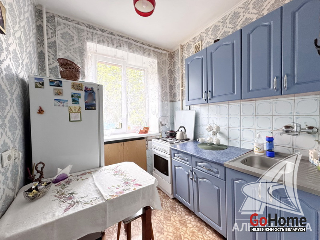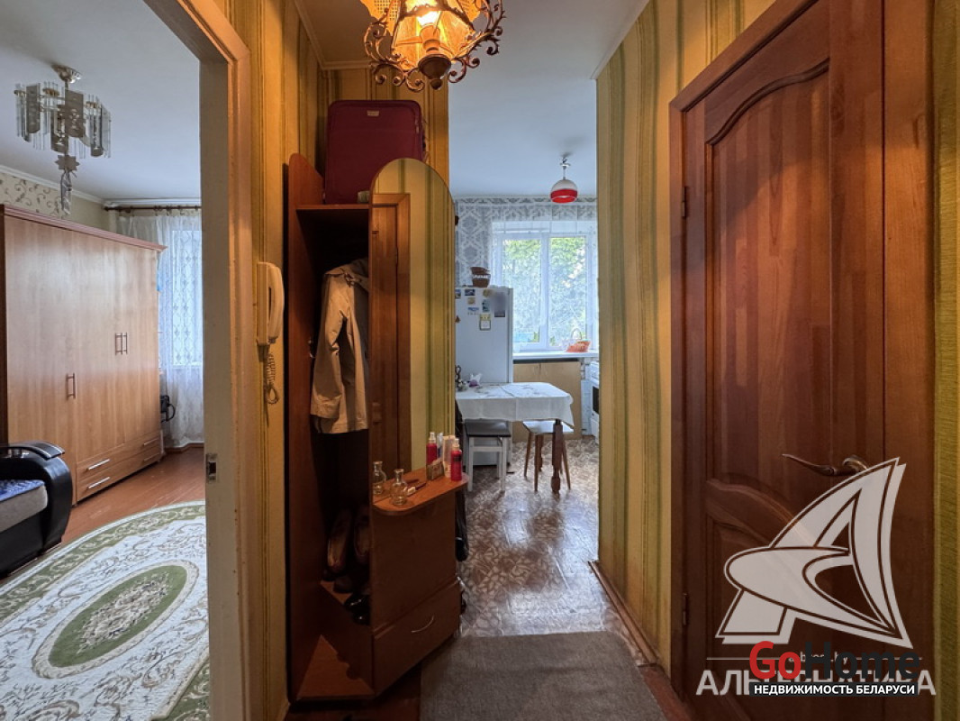 1-комнатная квартира, г. Брест, ул. Героев обороны Брестской крепости, 1970 г.п., 3 / 5 кирпич, 20,8 / 20,8 / 11,8, 5,0, санузел совмещенный, подвал, стеклопакеты, деревянные межкомнатные двери (в комнате) и массив, входная дверь металлическая, потолки - снежка, полы- доска, стены оклеены обоями, домофон. Кухонный гарнитур, шкаф в комнате. Во дворе игровая детская площадка, парковка для автомобилей. Лот - 251059