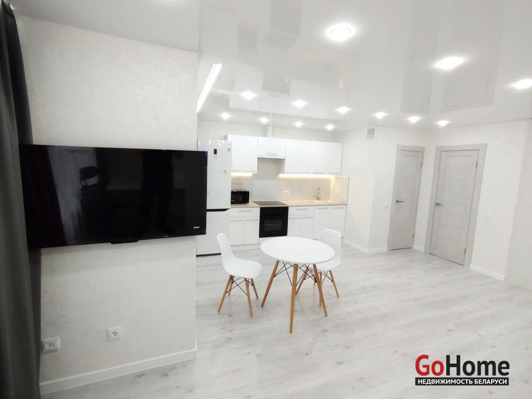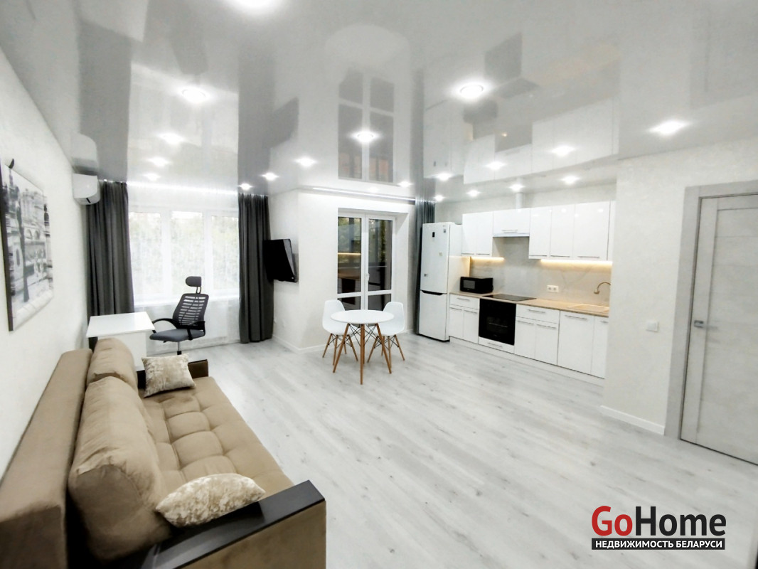 Полностью меблирована: удобный раскладной диван, обеденная зона, рабочее место, вместительный кухонный гарнитур