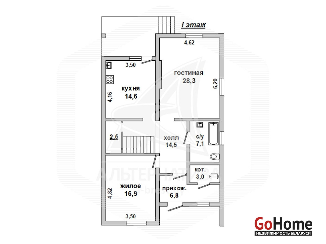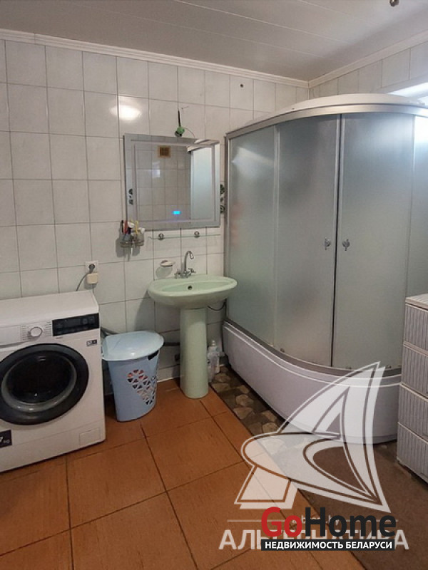 Жилой дом в Брестском р-не. 1 этаж, мансарда. Общ.СНБ - 195,9 кв.м, общ.- 185,8 кв.м, жил.- 115,1 кв.м, кух.- 14,6 кв.м, высота потолка - 2,80 м.