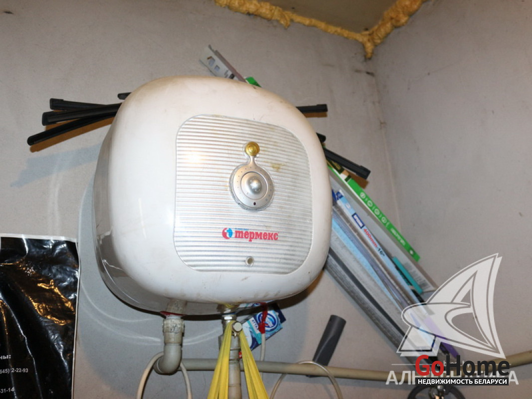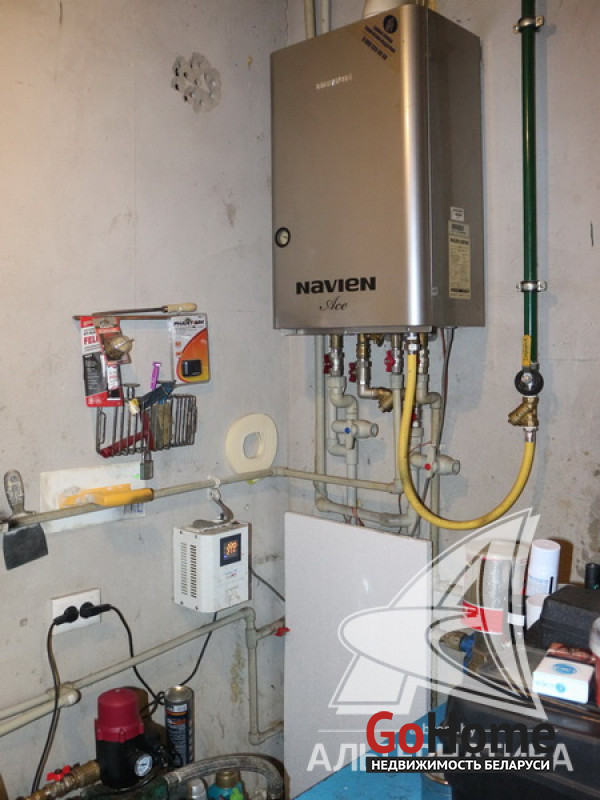Коммуникации: отопление - газовый котел, газ - централизованный (в доме), водоснабжение - централизованный водопровод и скважина, электричество - централизованное, канализация - автономная.