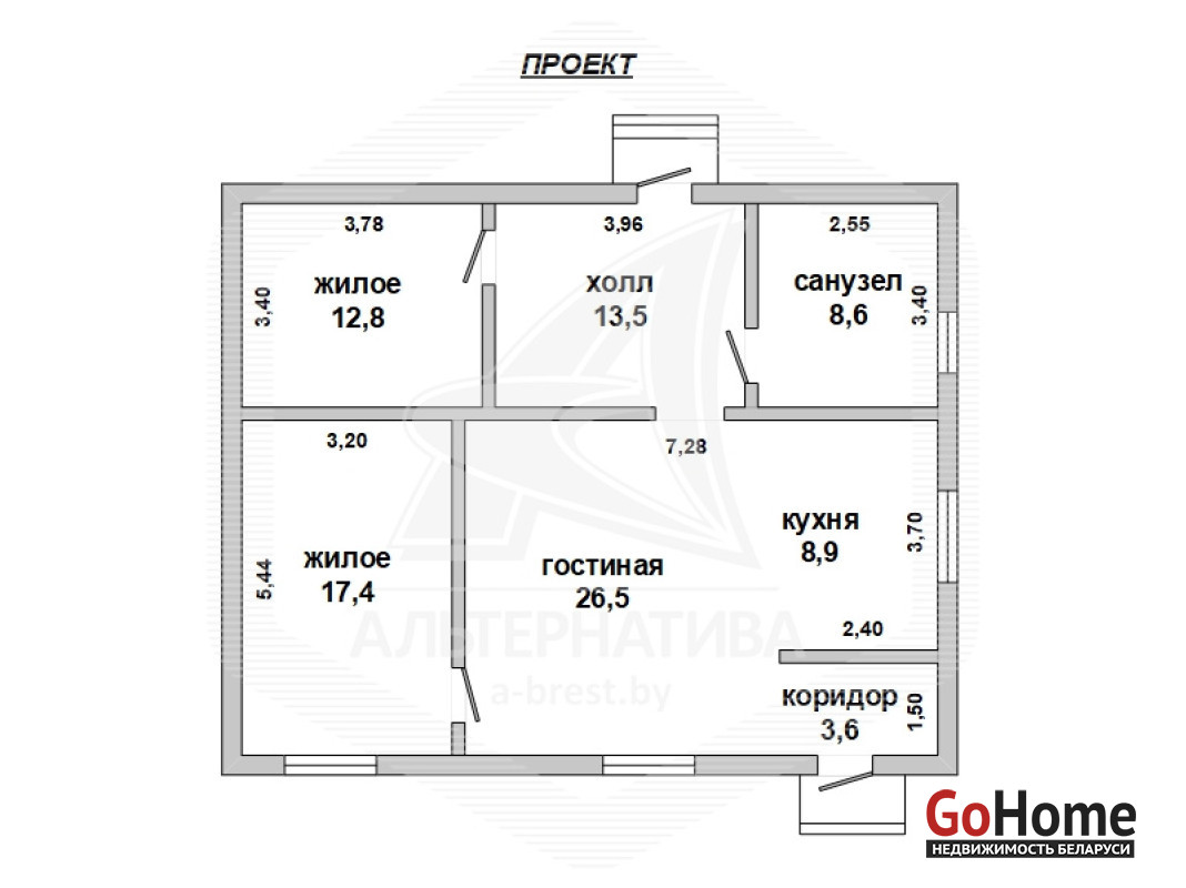 Коробка жилого дома в Малоритском р-не. 1 этаж. Общ.СНБ - 93,4 кв.м, общ.- 90,0 кв.м, жил.- 25,0 кв.м, кух.- 26,5 кв.м. 4 комнаты, высота потолка - 2,70 м.