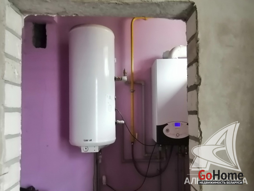 Коммуникации: отопление - газовый котел; газ - централизованный (в доме); водоснабжение - централизованный водопровод; электричество - централизованное; канализация - централизованная.