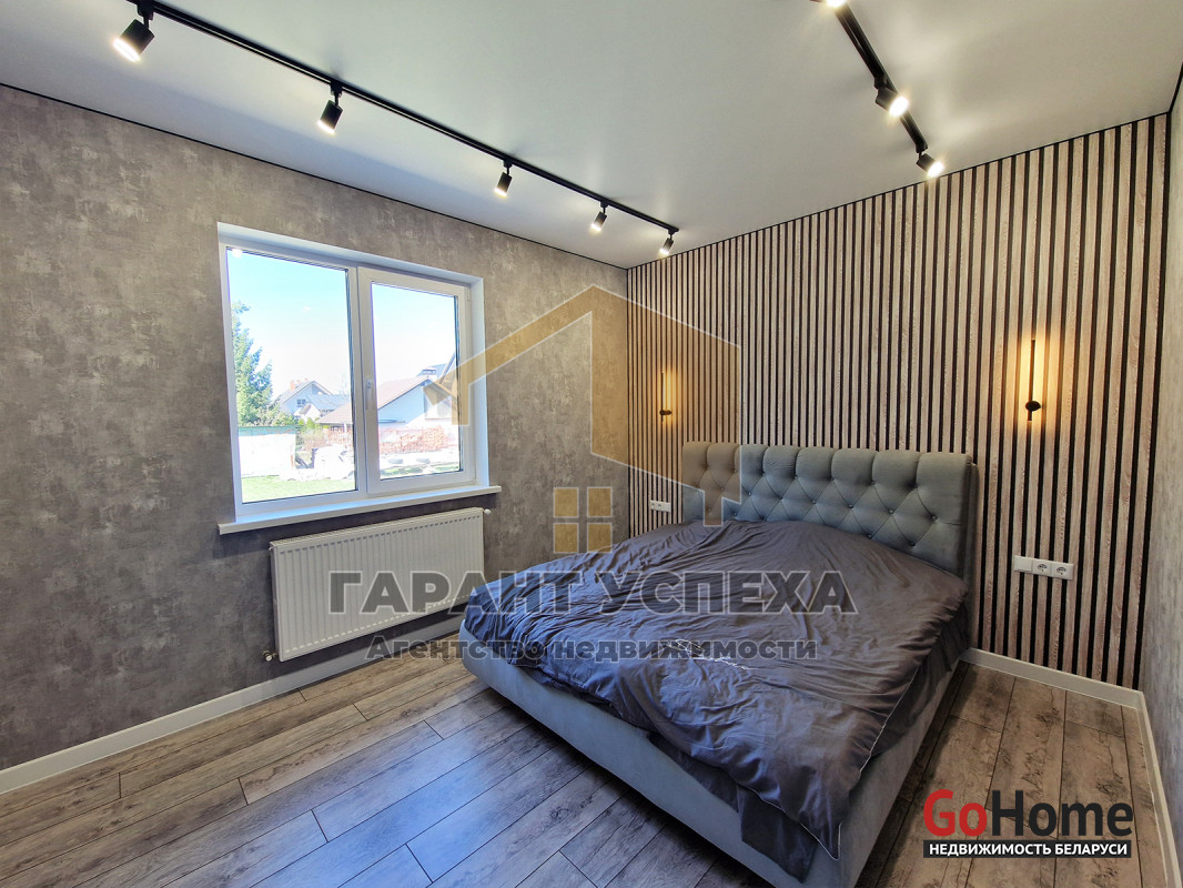Дом прекрасно подойдет для большой семьи: три спальни и кухня совмещена с гостиной с окнами в пол, установлена мебель и техника. Жилые комнаты состоят из родительской спальни и обустроенной детской комнаты. Третья спальня ждем ваших дизайнерских решений.