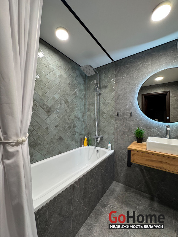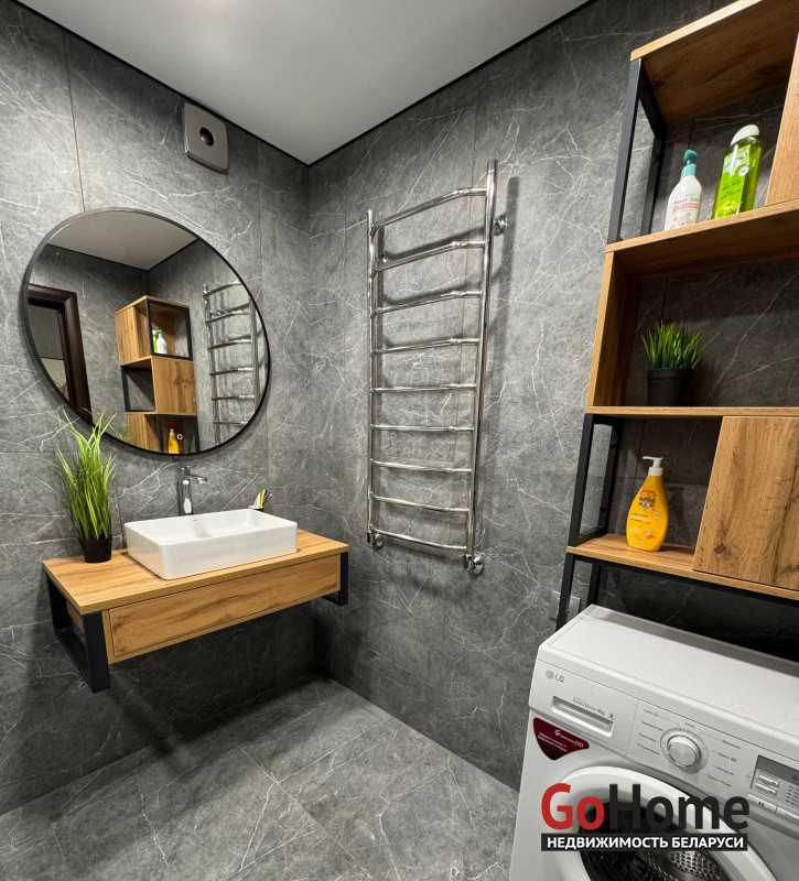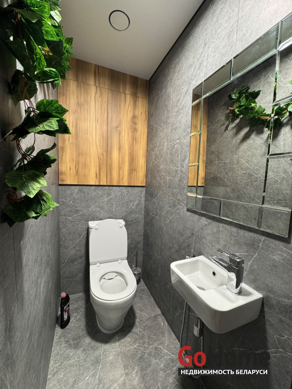 Большая гардеробная, большой санузел и большая туалетная комната.