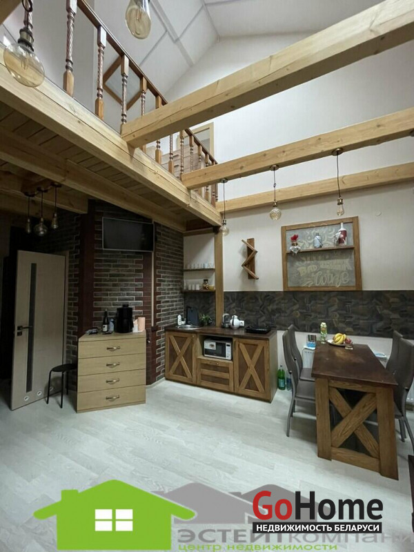 Площадь: 38,4 кв. м Количество комнат: 1 (+1 антресоль),(спальных мест 4) Санузел: совмещенный Мебель: полная меблировка (диван, большая двуспальная кровать, шкаф-купе, телевизор, кондиционер) Кухня: оборудованная техникой (встроенный холодильник, индукционная плита, микроволновая печь, посуда). Преимущества: