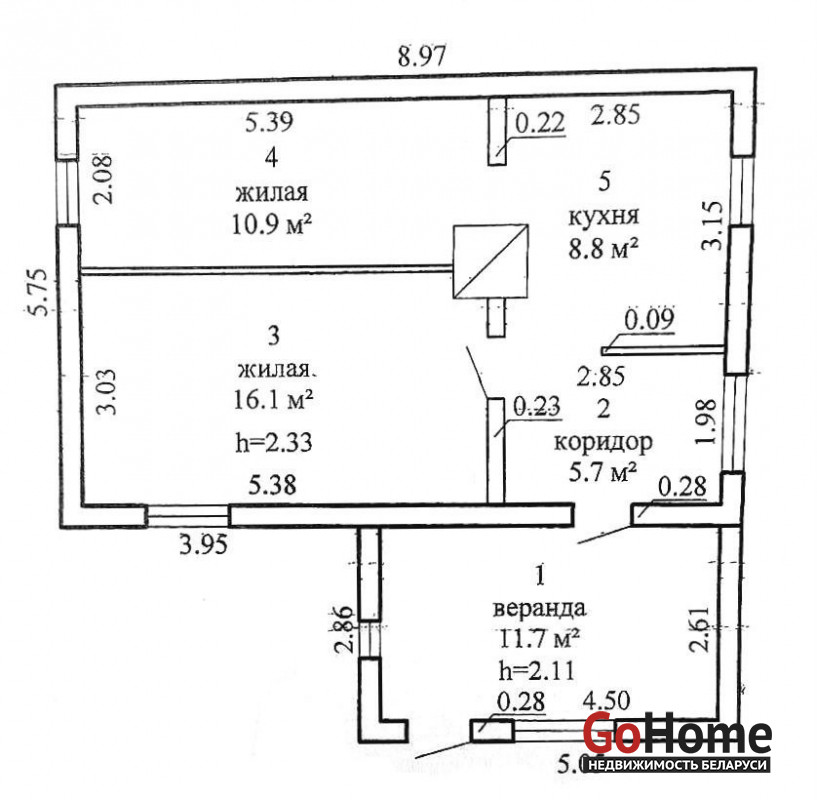 Дом из бруса, общая площадь – 41.5 м², 1960 года постройки.