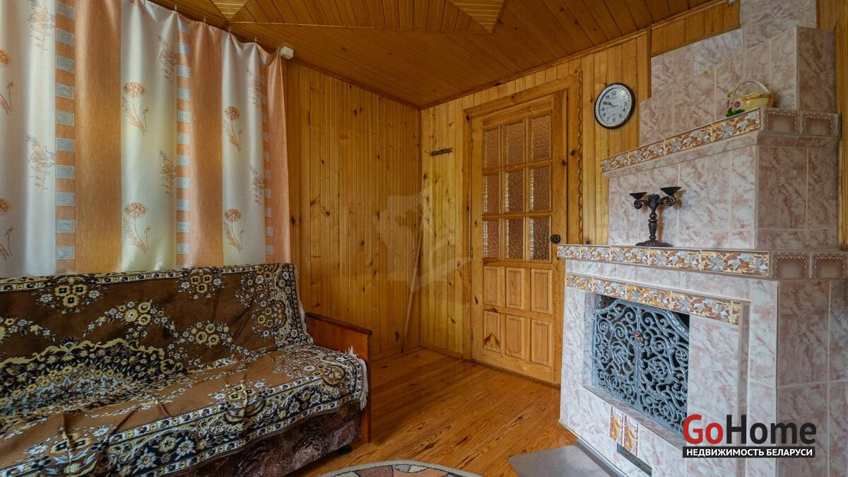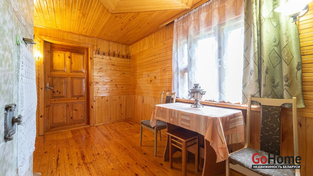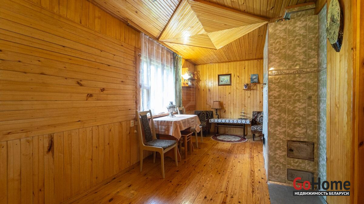 Дом 2005 года постройки, сложен из бруса и общит пластиком. На первом этаже расположены кухня, столовая, две жилые комнаты и санузел (канализация местная). На втором этаже одна просторная комната, которую можно при желании разделить на несколько спален. Грамотная планировка позволит с комфортом разместиться большой семье. Отопление печное. Печь с лежанкой и камином.