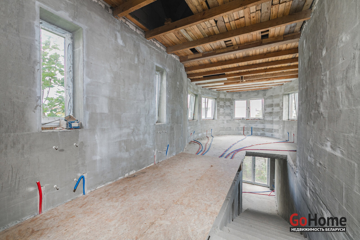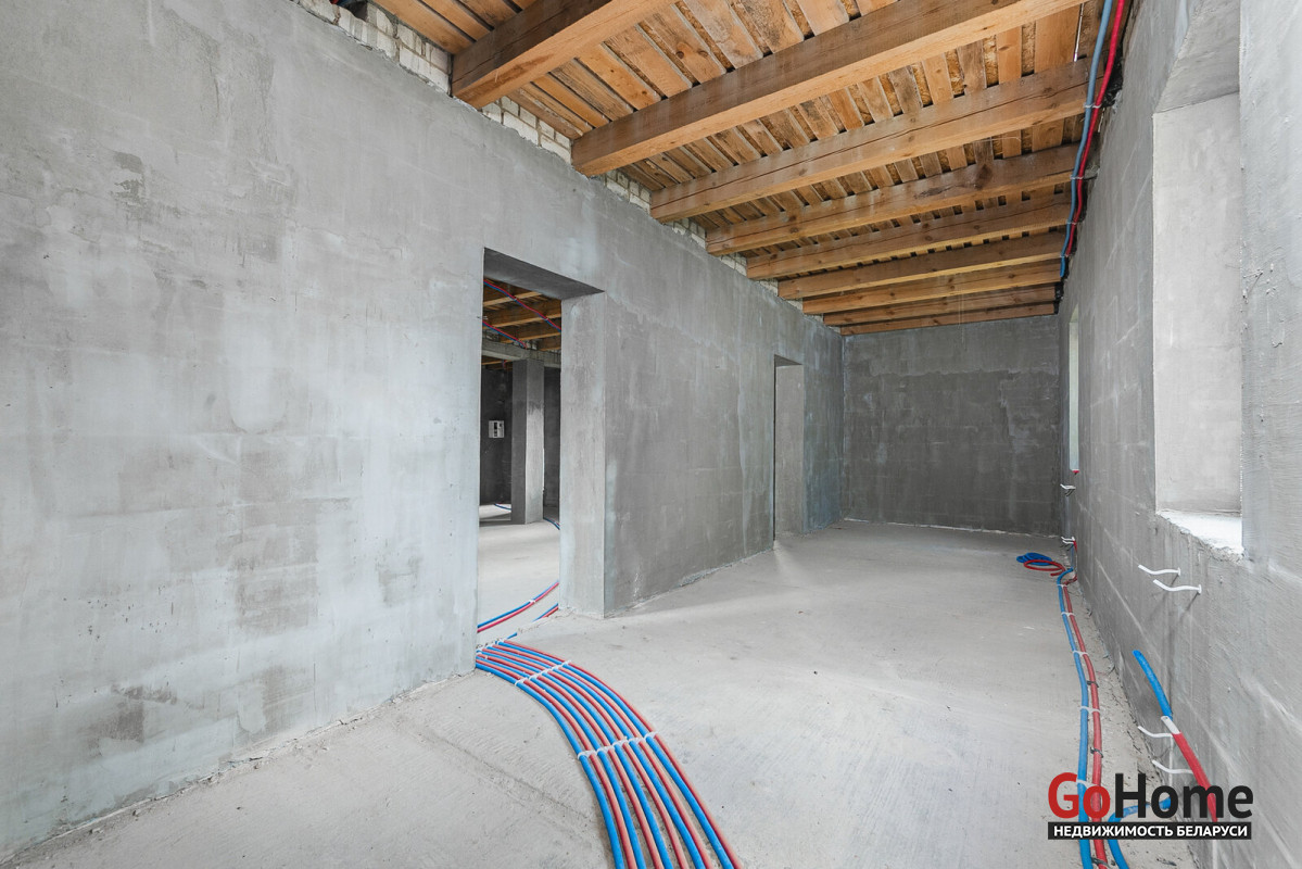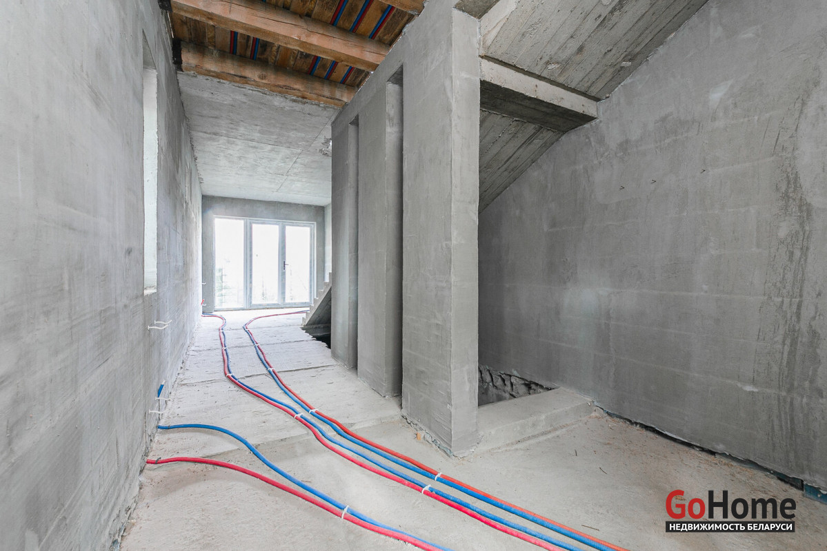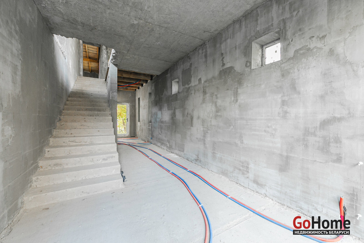 Квартира общей площадью 290,9 м2 в блокированном двухквартирном жилом доме. Двухэтажный дом под отделку с цокольным этажом построен из блоков, утеплен. Перекрытие – монолитное железобетонное. Кровля – металлочерепица. Окна – двухкамерные стеклопакеты ПВХ. Входная дверь металлическая.