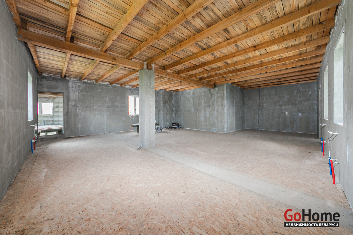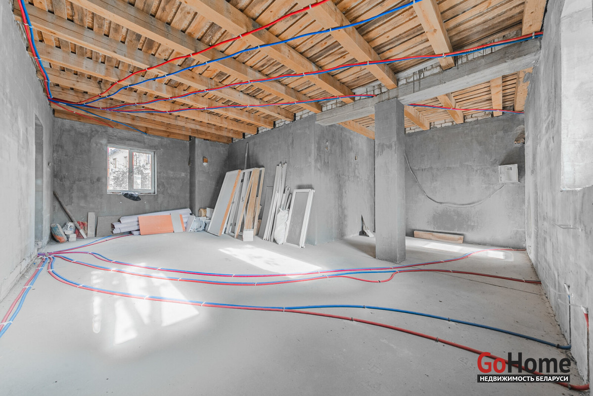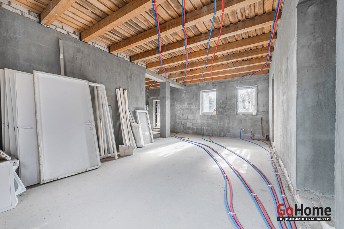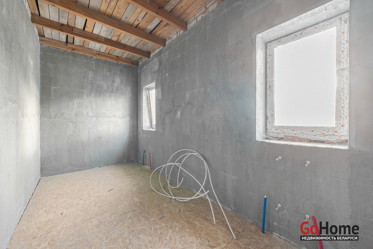 Квартира общей площадью 290,9 м2 в блокированном двухквартирном жилом доме. Двухэтажный дом под отделку с цокольным этажом построен из блоков, утеплен. Перекрытие – монолитное железобетонное. Кровля – металлочерепица. Окна – двухкамерные стеклопакеты ПВХ. Входная дверь металлическая.