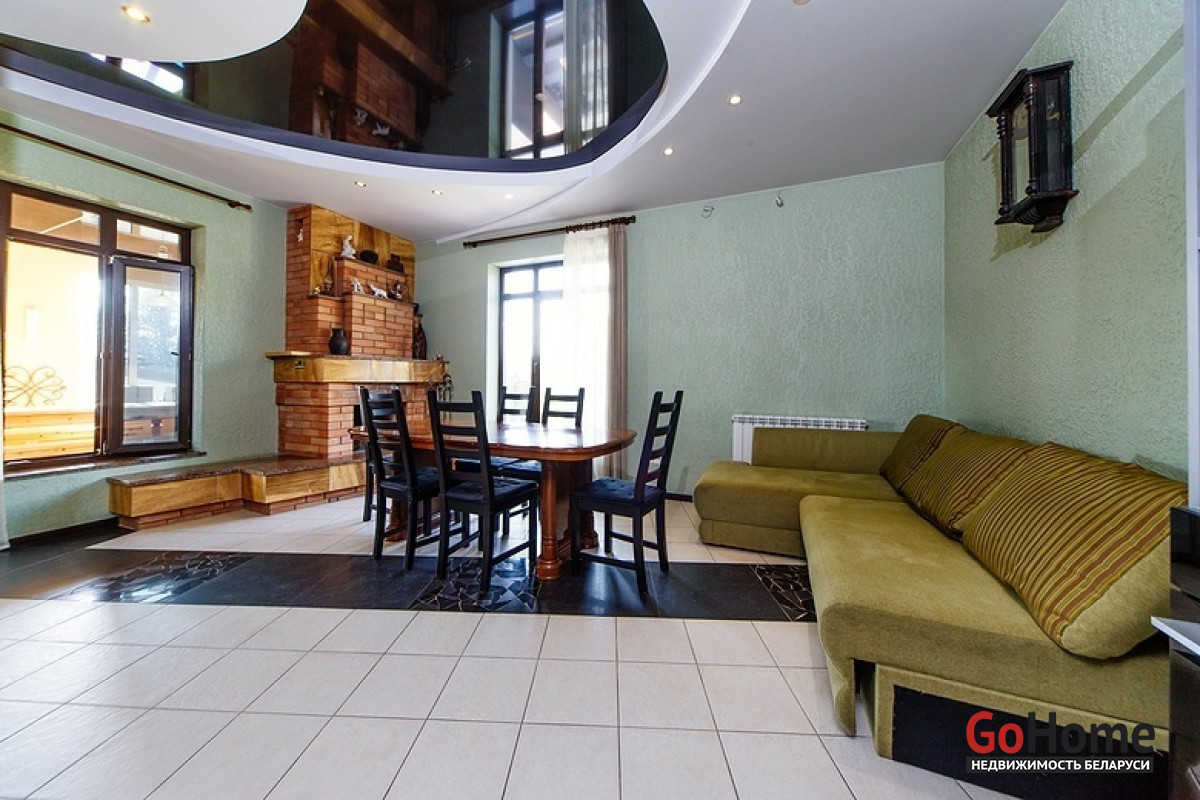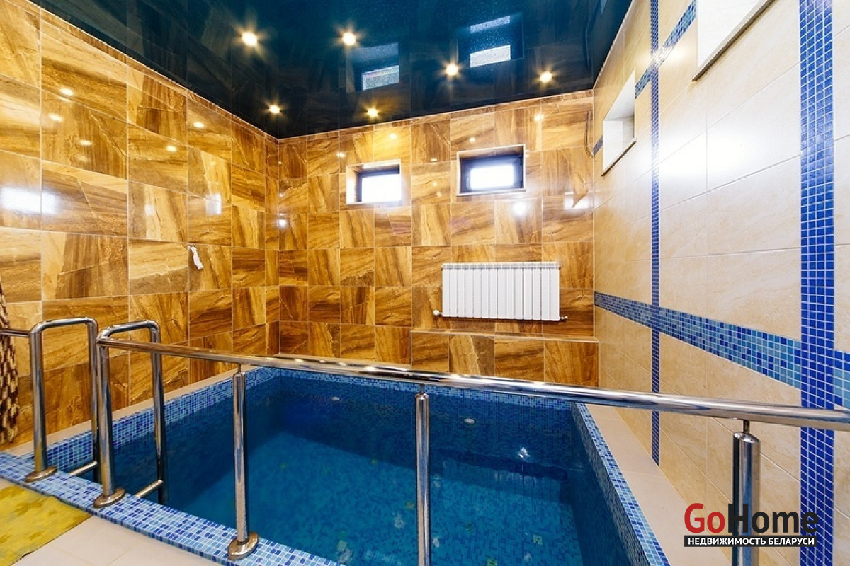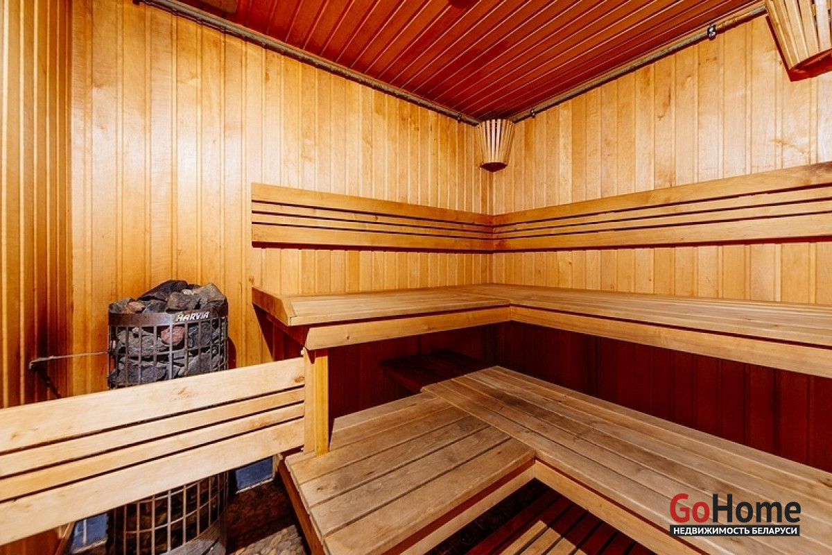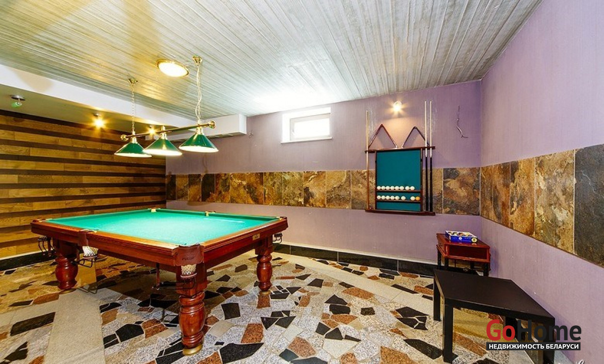 Интерьер коттеджа оформлен в современном стиле с элементами стильной классики. Просторные комнаты, выполненные в пастельном цветовом решении, заполнены светом и комфортом. В доме пять спален для спокойного отдыха, которые оснащены отдельным санузлом и душем, кухня с необходимой бытовой техникой, где каждый сможет проявить свой кулинарный талант. Также оборудован бильярдный зал с системой караоке и большим экраном, просторная гостиная комната с камином для незабываемых теплых вечеров в кругу семьи и финская сауна с бассейном. На территории усадьбы находится также гостевой дом с оборудованной русской баней на дровах, 2 комнатами отдыха, 2 санузлами, террасой, а еще беседка с зоной барбекю и дом охраны.