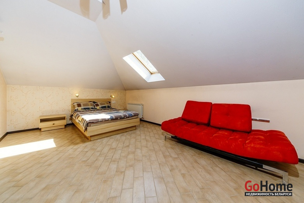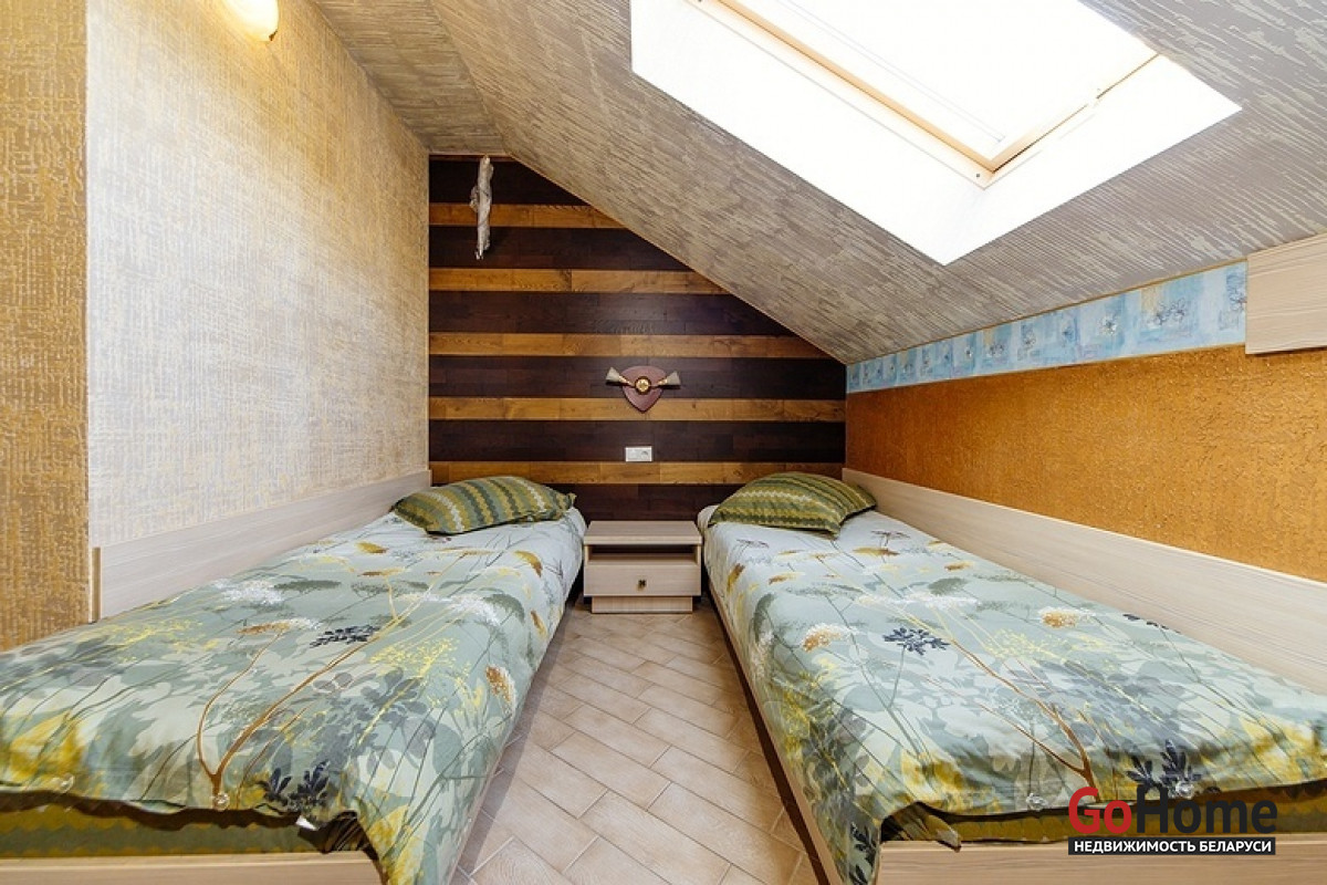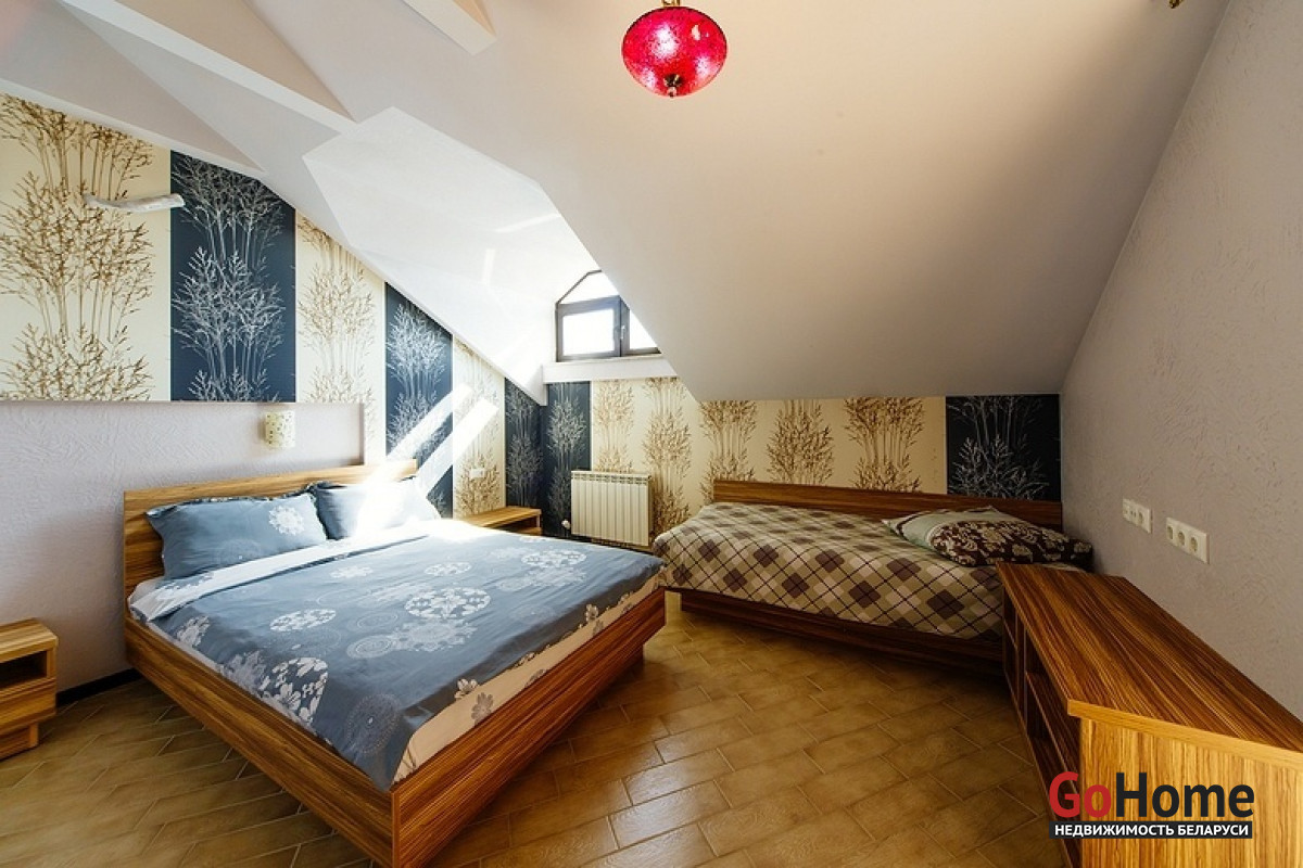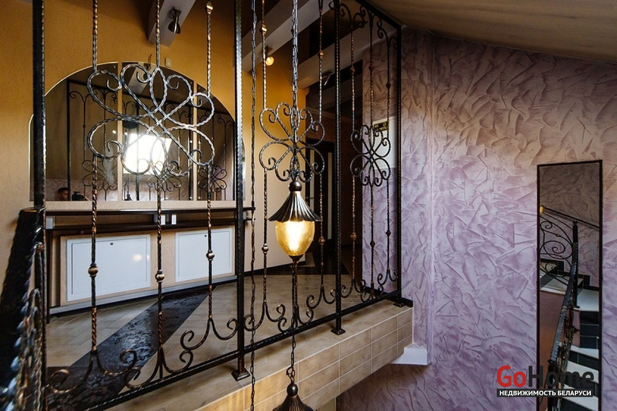 Интерьер коттеджа оформлен в современном стиле с элементами стильной классики. Просторные комнаты, выполненные в пастельном цветовом решении, заполнены светом и комфортом. В доме пять спален для спокойного отдыха, которые оснащены отдельным санузлом и душем, кухня с необходимой бытовой техникой, где каждый сможет проявить свой кулинарный талант. Также оборудован бильярдный зал с системой караоке и большим экраном, просторная гостиная комната с камином для незабываемых теплых вечеров в кругу семьи и финская сауна с бассейном. На территории усадьбы находится также гостевой дом с оборудованной русской баней на дровах, 2 комнатами отдыха, 2 санузлами, террасой, а еще беседка с зоной барбекю и дом охраны.
