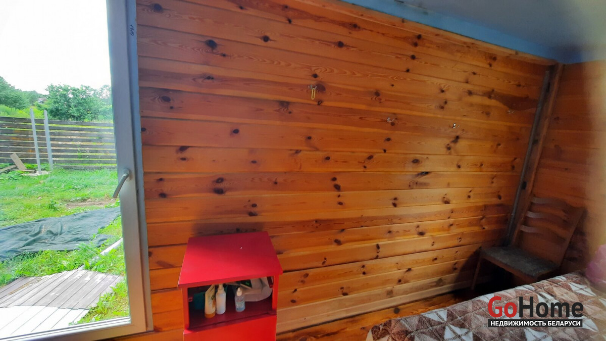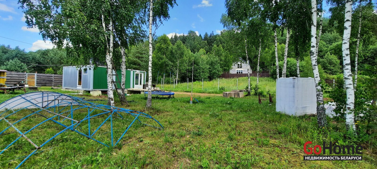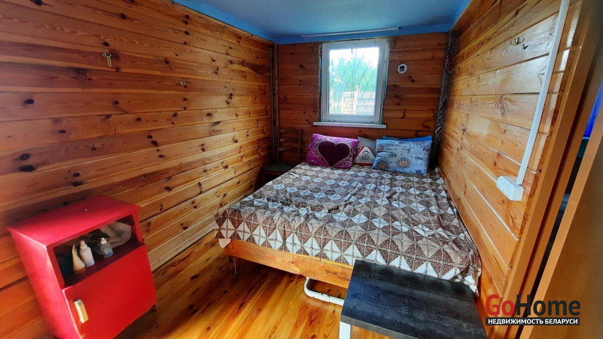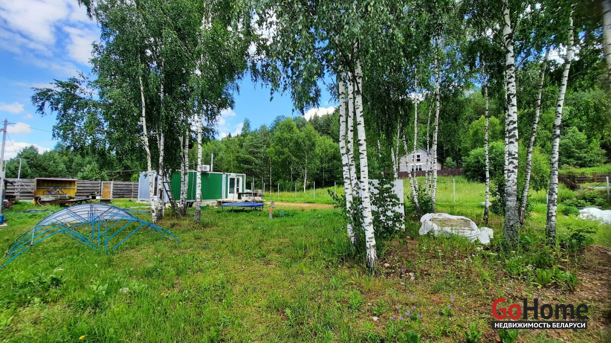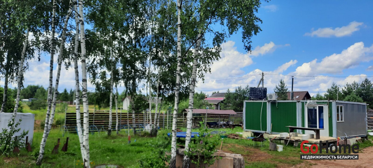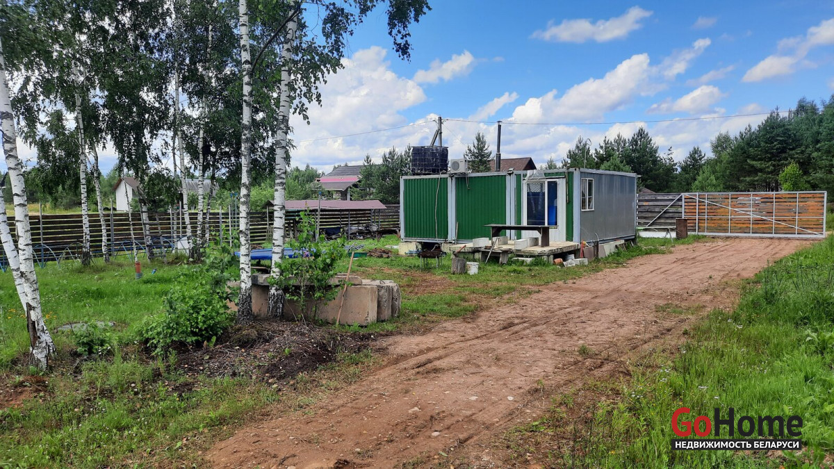 Продаётся участок 10 соток в с/ т Надежда Логойского района с домиком. ОТ МКАД 32 КМ. Хорошие подъездные пути. До леса метров 100. Участок в частной собственности ( приватизирован). На фундаменте из фбс блоков установлен домик плрщадью 40 м2. Дом состоит из коридора, выделеной зоны кухни, двух спален и санузела ( умывальник, душ, туалет, бойлер).