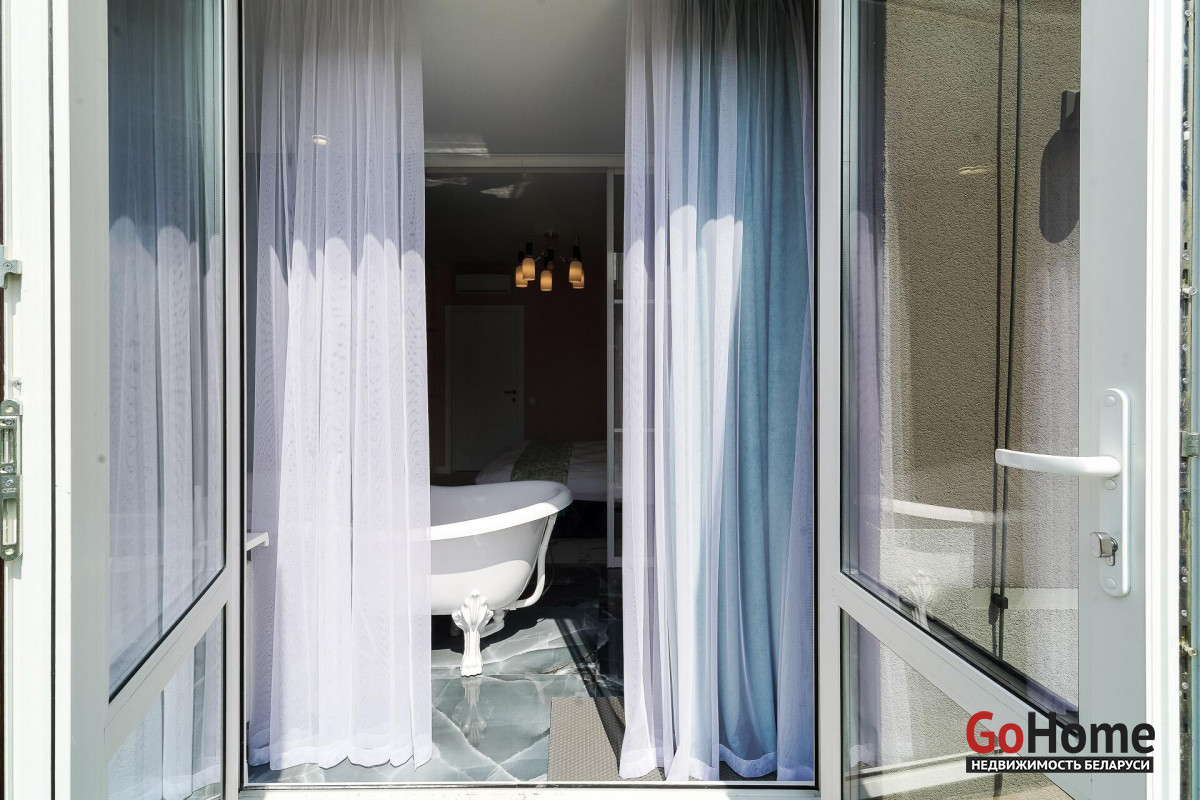 Отдельная, удалённая спальная комната с персональной каменной ванной и встроенным напольным белым смесителем- это просто уникальность данной квартиры. Ванна с панорамными окнами и выходом на личную, солнечную террасу! Мечта! Белые, раздвижные перегородки и итальянские шторы отделяют зону ванны от основной спальной комнаты. В комнате большая кровать с ортопедическим матрасом и текстильной отделкой. Подвесные прикроватные бра и люстра из последних итальянских коллекций, прекрасно дополняют весь интерьер спальни. В квартире установлено 2 кондиционера, что сделает Ваш отдых, тёплым и освежающим в любую погоду.
