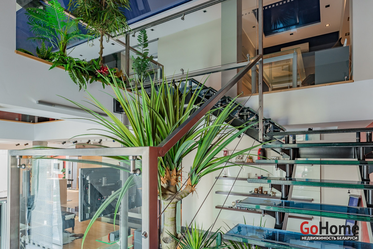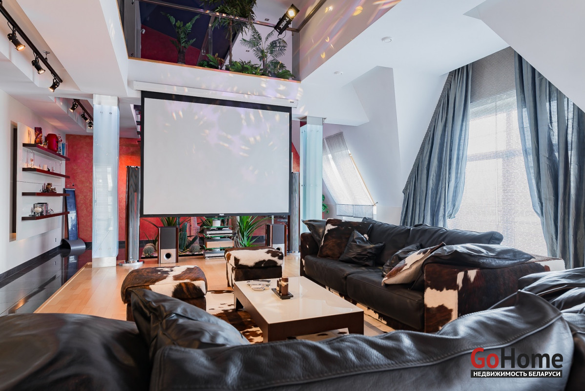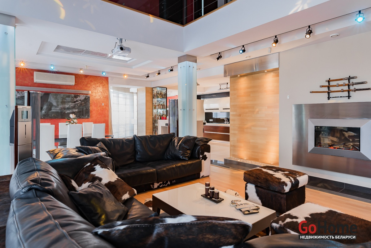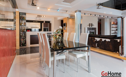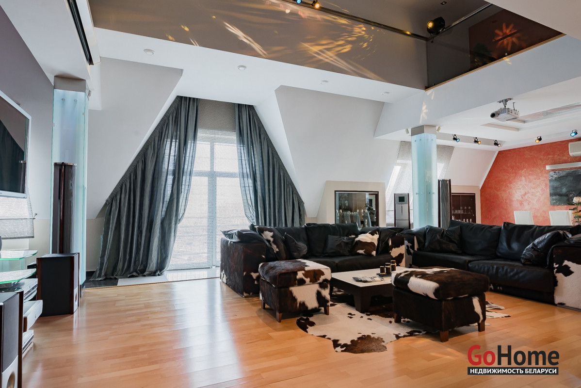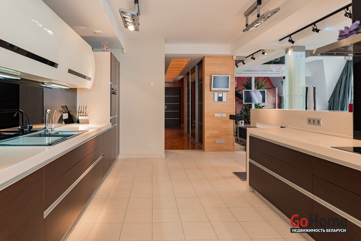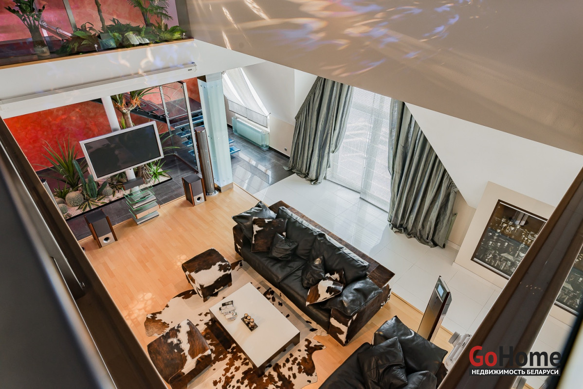 Квартира двухуровневая площадью 216 кв.м., снабжена системой "умный дом" (система рекупирации воздуха, система антипротечек, 3 программы настройки освещения по настроению и т.д.). Выполнен ремонт из дорогостоящих импортных материалов, полностью меблирована (эксклюзивная мебель известных американских брендов).