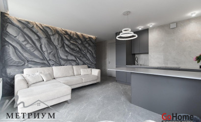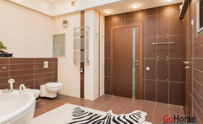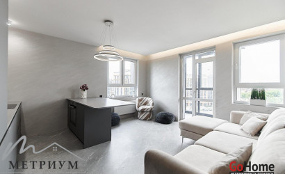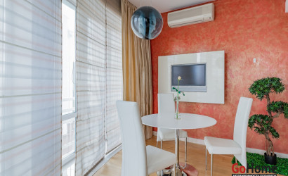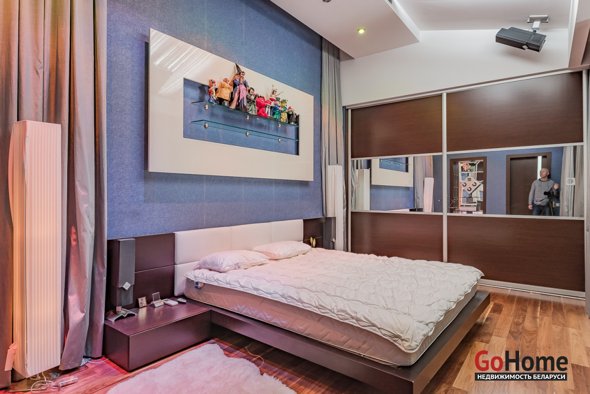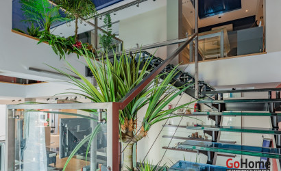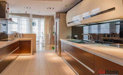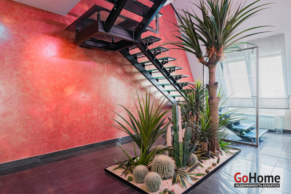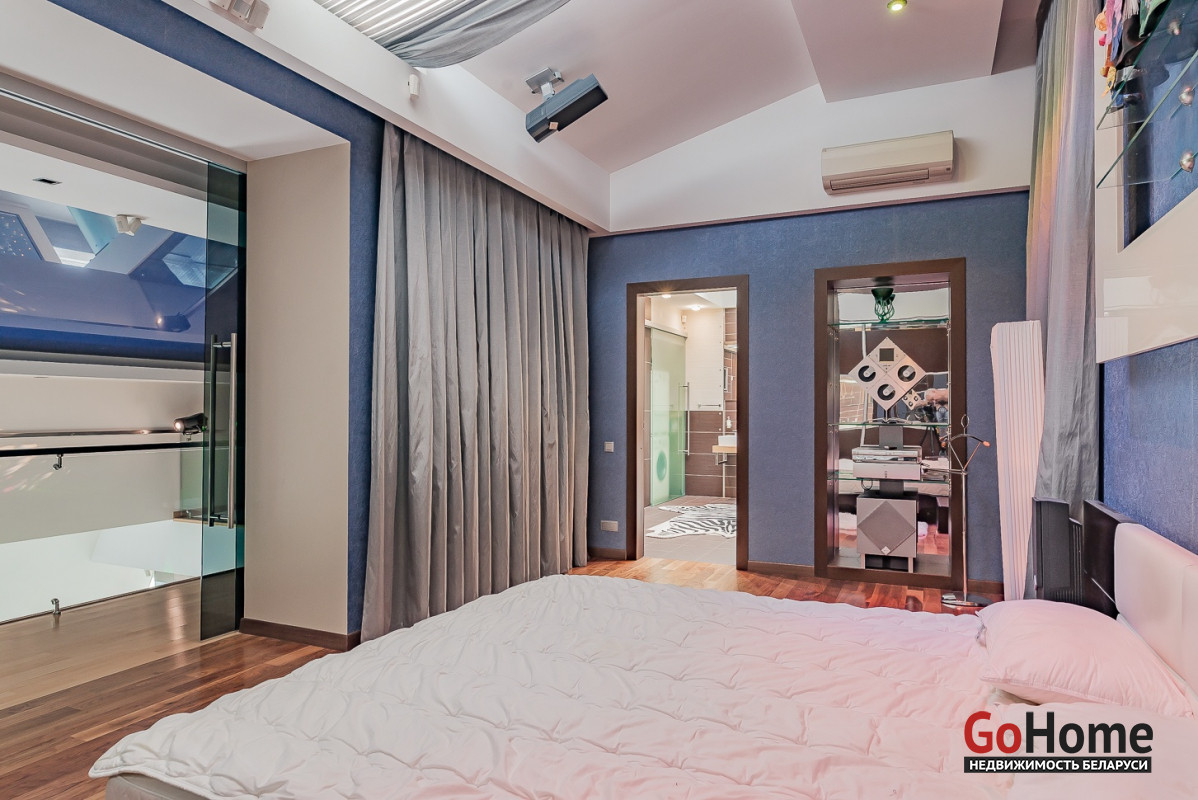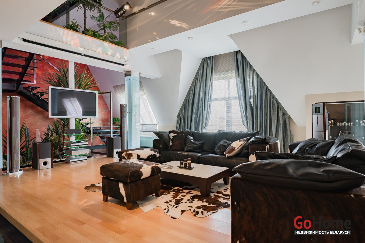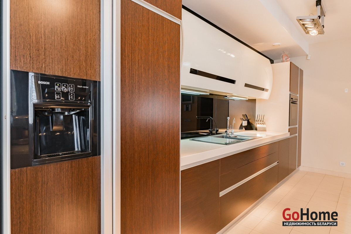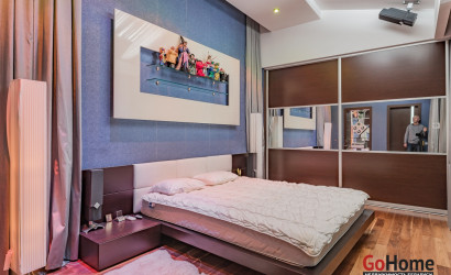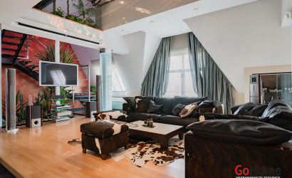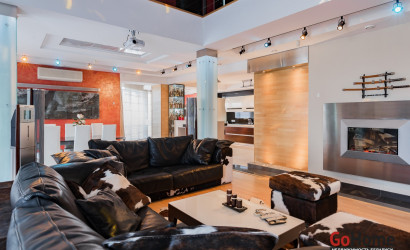 Квартира двухуровневая площадью 216 кв.м., снабжена системой "умный дом" (система рекупирации воздуха, система антипротечек, 3 программы настройки освещения по настроению и т.д.). Выполнен ремонт из дорогостоящих импортных материалов, полностью меблирована (эксклюзивная мебель известных американских брендов).