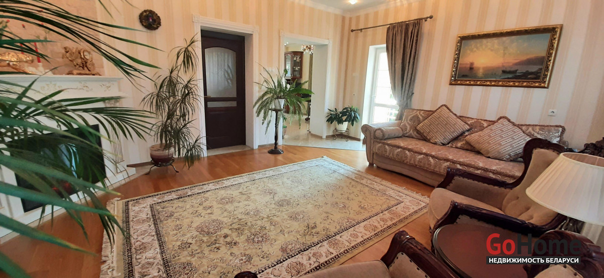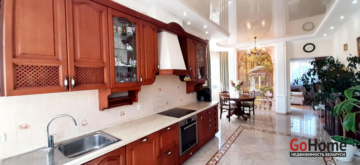 Шикарный коттедж с ландшафтным дизайном участка ждет Вас!Продается прекрасный коттедж на уютной улице, уходящий в лесной биологический заказник с вековыми соснами, свежим воздухом и пением птиц, а также с дорожками для прогулок!Красивый ухоженный участок в частной собственности, огражден по периметру, фасадная часть: камень и металлопрофиль, ворота откатные на пульте! Шикарная живая изгородь из туй со стороны соседей. Удобная парковочная зона вымощена тротуарной плиткой. Каждый уголок облагорожен, ухожен и имеет свое предназначение: красивые клумбы, плодовые и декоративные, редкие вечнозеленые растения, зона отдыха с беседкой и мангальной зоной, батут и место под огородничество при желании.Шикарный дом в 2 уровня и 5-ю просторными комнатами, уютной террасой, 2-мя балконами и огромным подвальным помещением с откатными воротами на пульте: оборудованным, утепленным, электрофицированным и разделённым на зоны. При желании можно организовать сауну, либо модный хамам.Замечательная парадная и попадаешь в красивый дом, где хочется наслаждаться жизнью! Современный стиль: Неоклассика. Качественные окна ПВХ; на полу : плитка с подогревом и в жилых зонах - натуральный паркет!На 1-ом уровне: большая, удобная кухня - столовая (28м2), с красивой обеденной зоной. Попадаешь в гостиную с камином и выходом на милую террасу. Гостевая комната или спальня обустроена шкафом - купе. Просторный санузел с душевой кабиной, облицован итальянской плиткой и сантехникой.Добротная, надежная лестница на второй этаж, где расположена приватная зона из 3-ех изолированных комнат и большой ванной комнатой.2 балкончика на обе стороны дома с красивейшими видами! Спальня с собственной гардеробной, спальня с балкончиком и уютная оборудованная детская комната.Дом со всеми коммуникациями: паровое отопление на газу, центральное водоснабжение, септик. Оптоволокно, TV.Прекрасные, дружные, презентабельные соседи в окружении. Рядом вся необходимая инфраструктура: остановки, магазины, 7 минут езды и Вы в Минске.