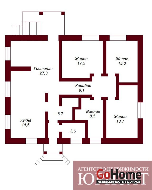 Под домом находится цокольный этаж, который можно переоборудовать под сауну, комнату отдыха, бильярдную и пр.