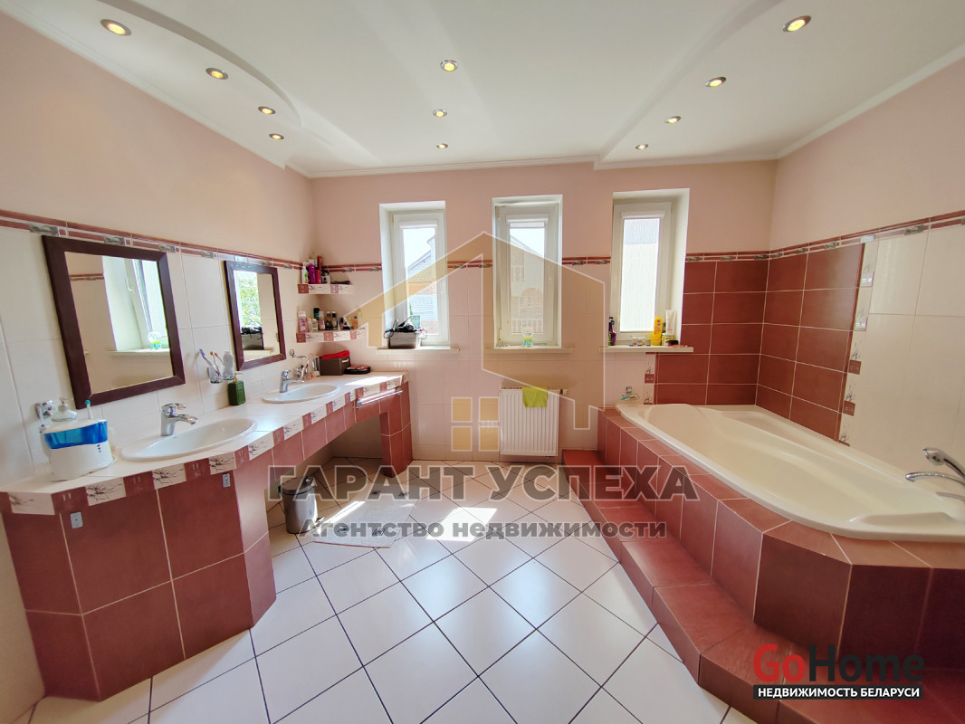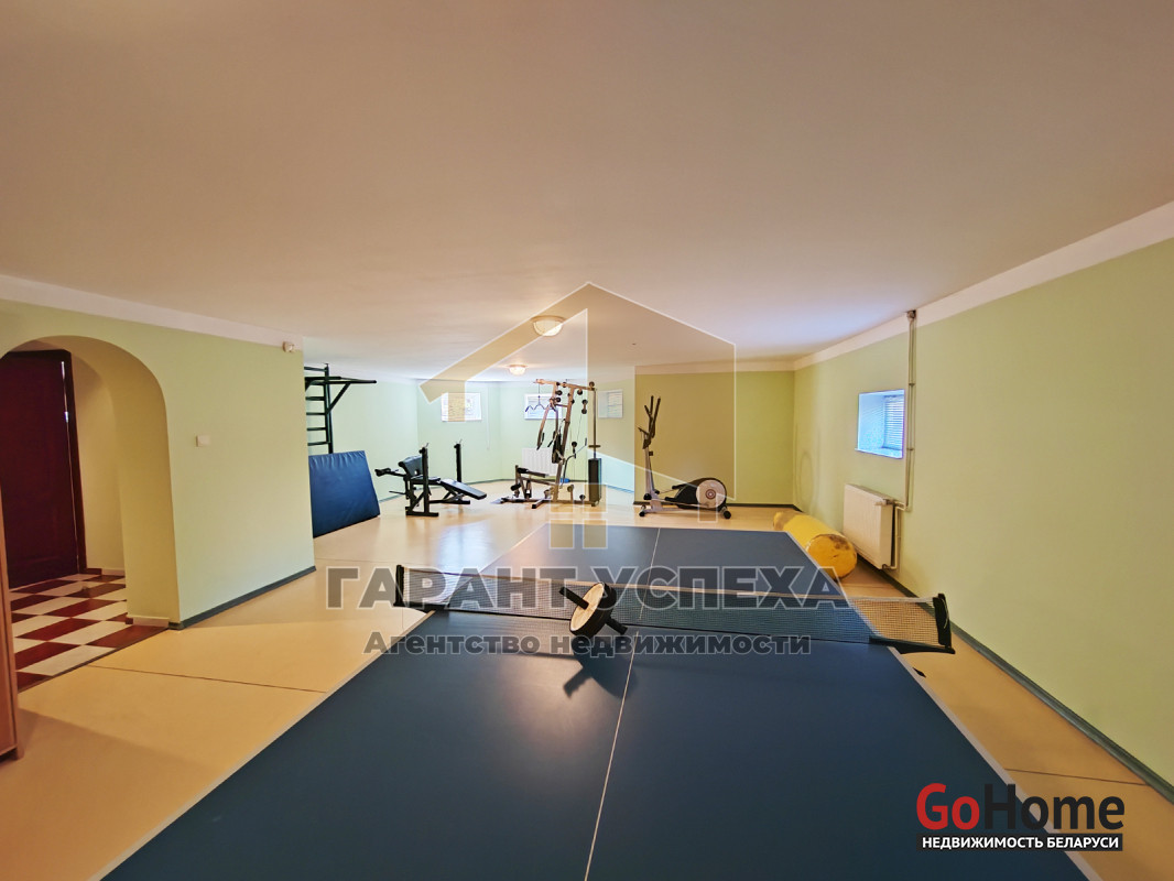 Во всём доме сделан качественный ремонт. В помещениях уложены полы из паркетной доски и керамической плитки, многоуровневые потолки из гипсокартона имеют декоративную подсветку и точечные светильники, а в кухне, прихожей и санузлах разведена система тёплых полов. Комфортный микроклимат в доме поддерживается при помощи двух кондиционеров. С правой стороны в доме имеется автомобильный гараж с автоматическими роллетными воротами. На цокольном этаже расположено помещение топочной, а также настоящий спортзал с теннисным столом и тренажёрами.