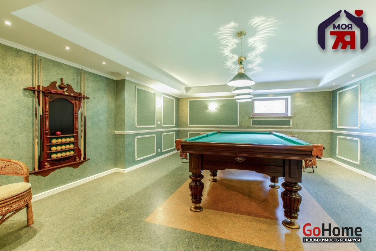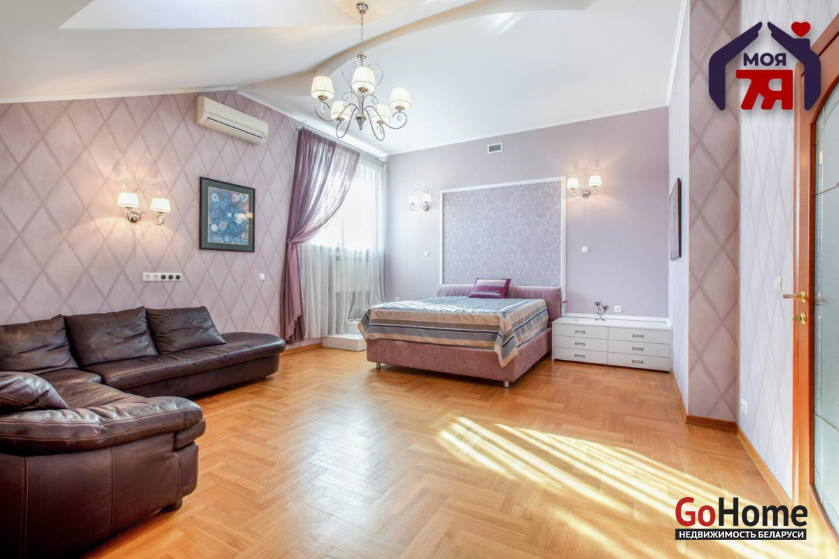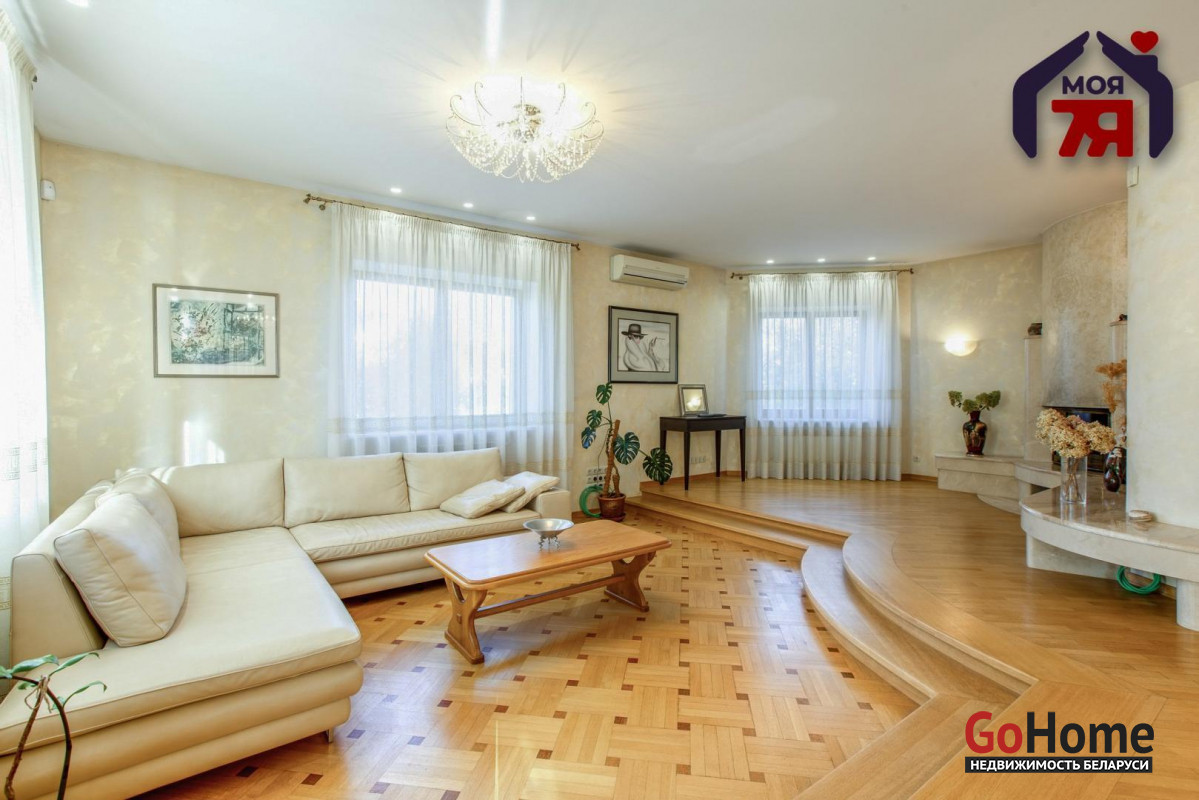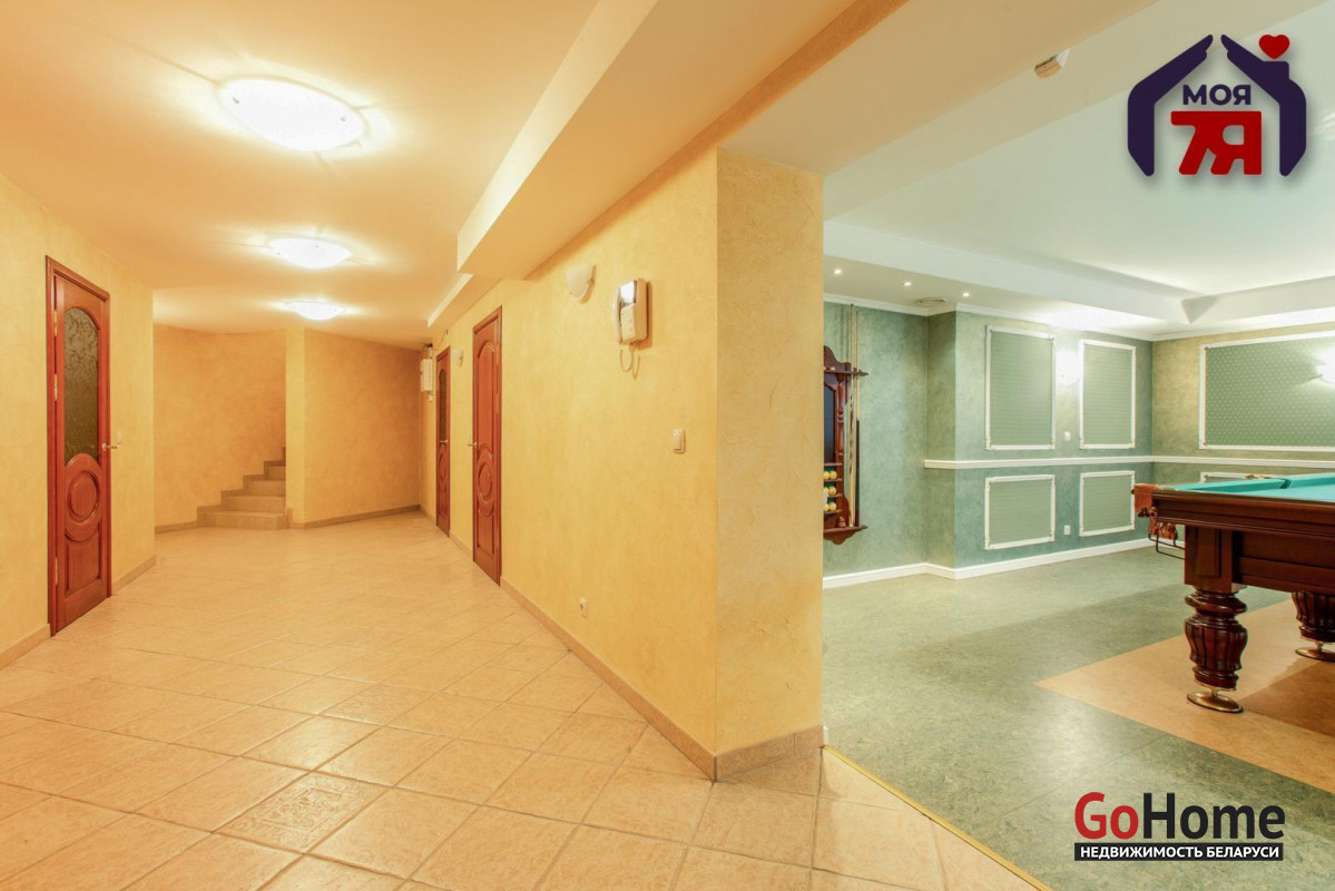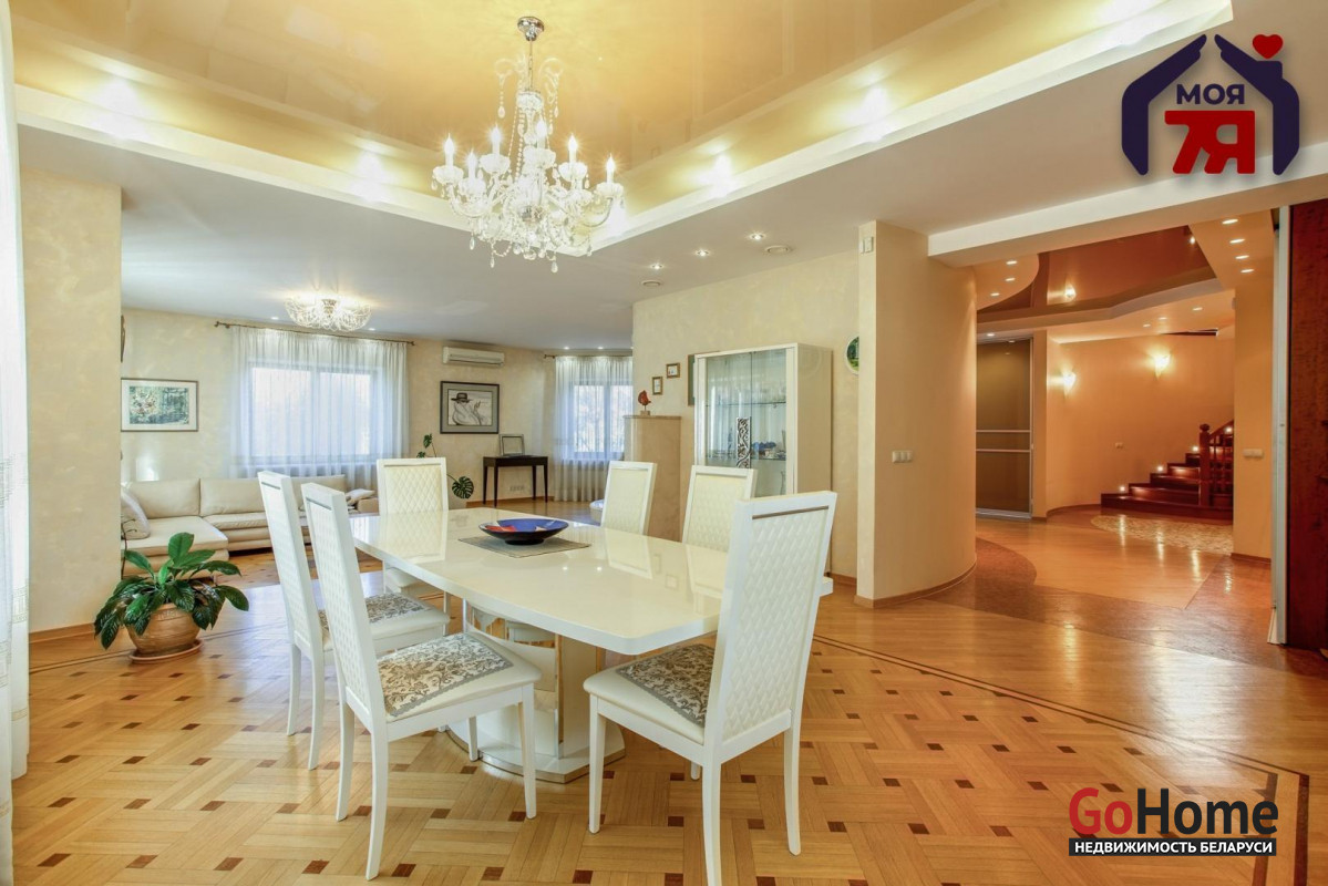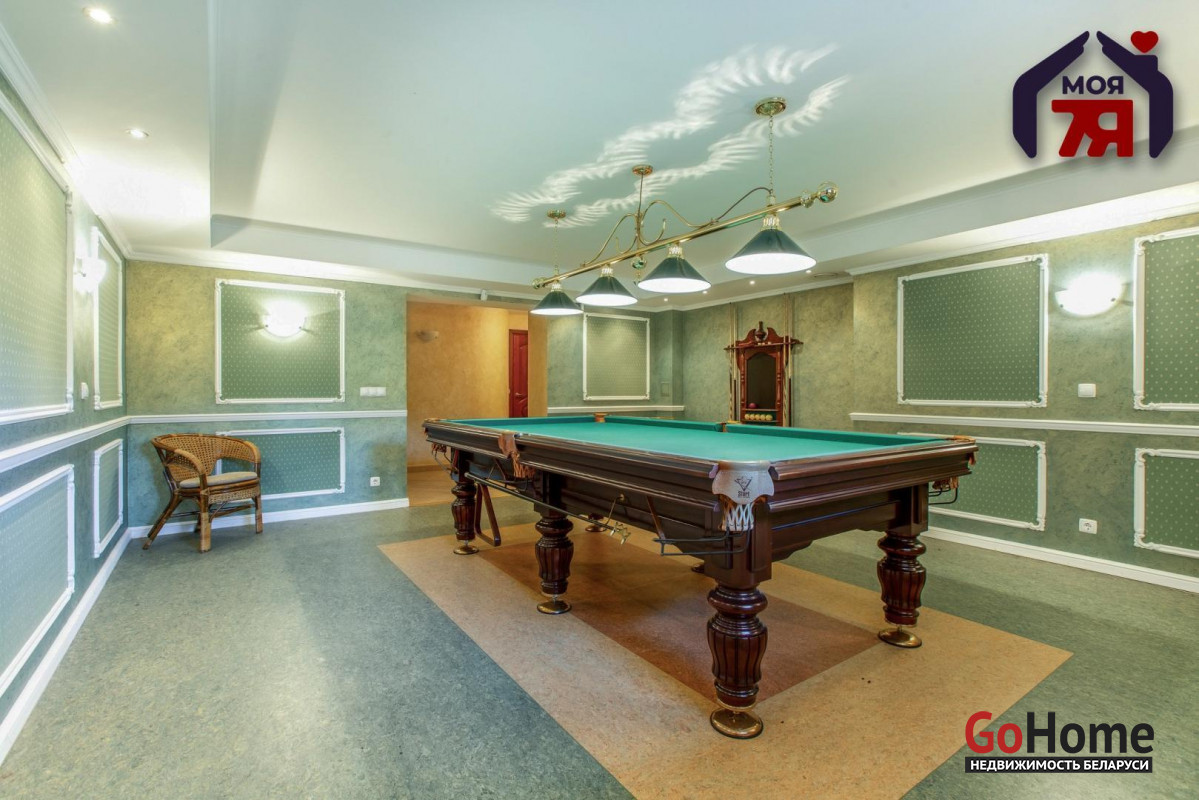 Мечтали о собственном доме в самом экологически чистом районе города Минска с баней и бильярдом? Мечтам свойственно сбываться!️ О Вашем будущем участке:- Удобное расположение участка в живописном месте на тихой улице в 300 метрах от пляжа Цнянского водохранилища. - Участок в 10 соток огорожен по периметру в одном стиле с домом. Благодаря высоким автоматическим воротам, видеонаблюдению на всей территории и охранной сигнализации Вы будете в безопасности. Отличные подъездные пути с асфальтированной дорогой. - Благоустроенная территория, продуманный ландшафтный дизайн: ухоженный газон, декоративные деревья, кустарники, цветы, которые будут радовать Вас своими яркими красками. Аккуратно выложена тротуарная плитка. - Обустроенная зона барбекю позволит собираться с семьей и друзьями как можно чаще, готовить пищу на открытом огне и наслаждаться свежим воздухом. Рядом располагается закрытая терраса - зимний сад, в которой будет комфортно в любой сезон. - На участке расположен 4-этажный дом полностью готовый для проживания! А также гараж на два автомобиля с отдельным входом в дом.️ В каком доме Вы будете жить:- Дом построен в 2008 году по оригинальному дизайн-проекту из газосиликатных блоков, утеплен, оштукатурен и покрашен. Такой дом обладает великолепными теплоизоляционными характеристиками и хорошей звукоизоляцией. - Общая площадь дома составляет 538,4 м2: пять просторных жилых комнат с кондиционерами, большая кухня, гостиная с каминной зоной, 4 санузла и др. Удобная планировка с отлично организованным пространством. Выполнен высококачественный ремонт с использованием качественных и дорогостоящих материалов. - Проведены все необходимые коммуникации: электричество 3 фазы 380 вольт, центральные водоснабжение, канализация. Отопление с помощью дорогостоящего газового оборудования, которое установлено в котельной на цокольном этаже. Центральная воздушная система подает в комнаты очищенный от пыли, свежий воздух, нагретый до заданной комфортной температуры. Везде установлены стеклопакеты ПВХ, теплые полы с итальянской плиткой и паркетом по всей площади. - Дом построен в форме ракушки. Высота потолков 3 метра. - Цокольный этаж. Состоит из отапливаемых помещений: 2 комнаты отдыха, баня с парилкой, тренажёр, русский бильярд, котельная, постирочная, несколько кладовых и хоз. помещений, где будет удобно хранить инструменты, инвентарь, а также овощи, консервации.- На 1 этаже располагаются: просторная кухня, оборудованная всем необходимым (столешница из гранитного камня Аврора, посудомоечная машина, духовой шкаф, микроволновая печь, двухдверный холодильник с морозильной камерой), большая гостиная (60,7 кв.м.) с каминной зоной, где будет одно удовольствие находиться зимними вечерами читая книгу с чашкой чая, санузел с отделкой из итальянской плитки и душевой кабиной.- На 2-ом этаже располагаются: спальни с King-size кроватями, рабочий кабинет с мебелью из дерева и кожаным диваном, 2 санузла, один из них с ванной, душевой кабиной и биде, гардеробные для удобного хранения одежды и обуви. Из жилой комнаты есть выход на балкон, откуда открывается красивый вид на зеленую зону, где Вы сможете наблюдать за красивыми закатами. - Дом находится на непроездной улице в респектабельном окружении и отличными соседями. - Всё, что есть в доме, остаётся с Вами!️ Что будет ряд