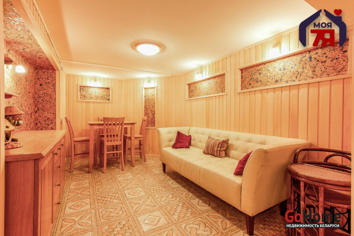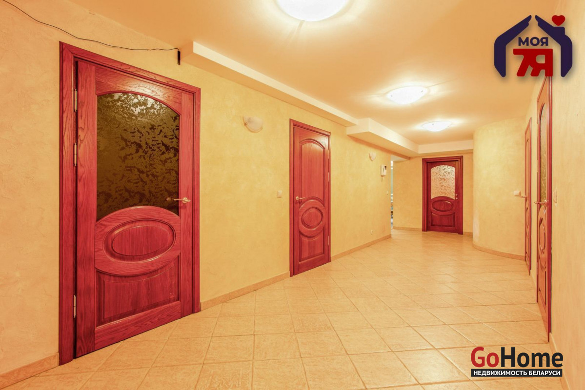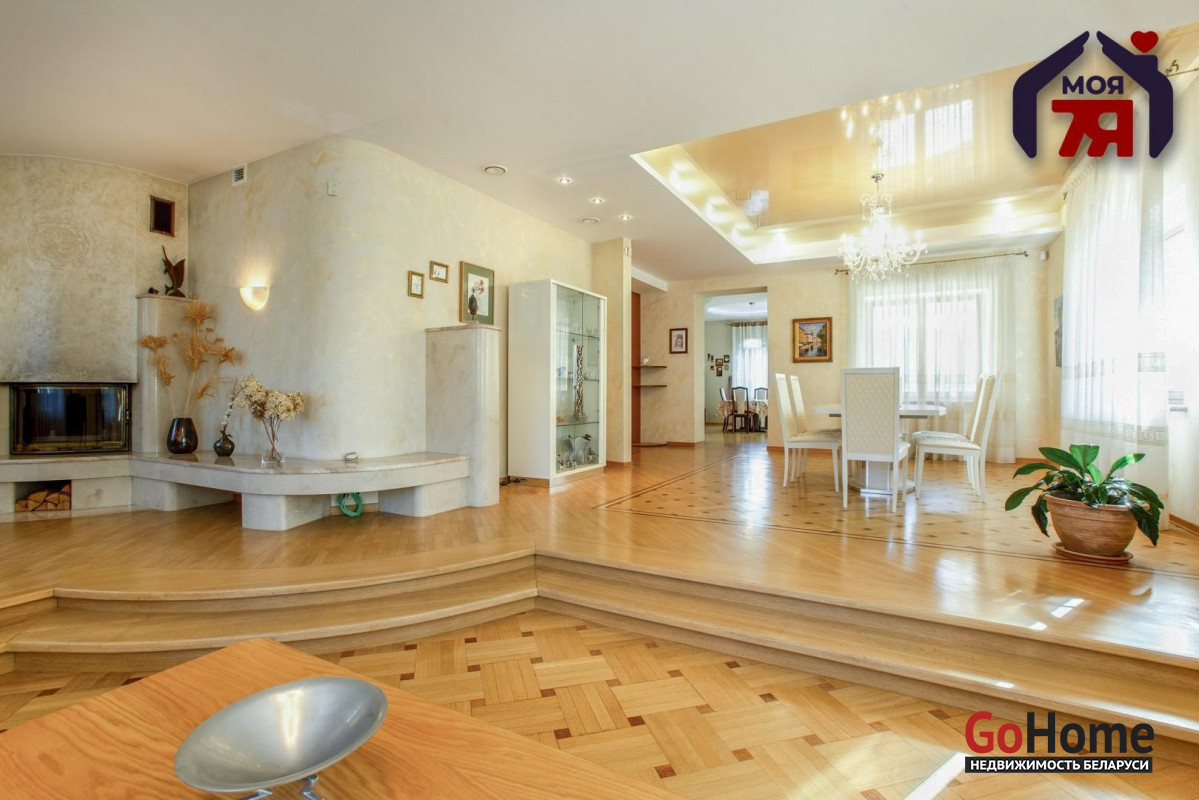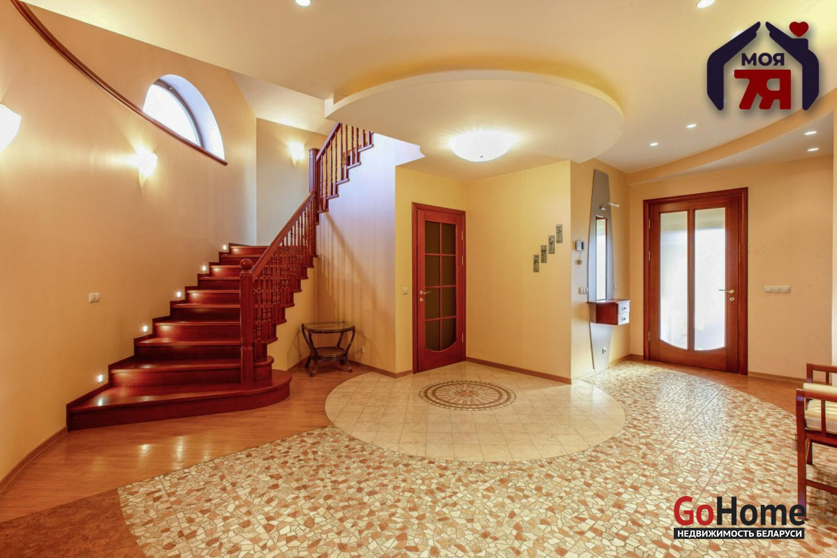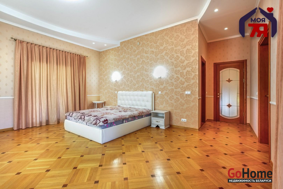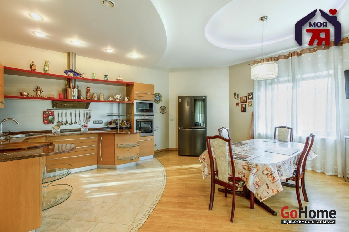 Мечтали о собственном доме в самом экологически чистом районе города Минска с баней и бильярдом? Мечтам свойственно сбываться!️ О Вашем будущем участке:- Удобное расположение участка в живописном месте на тихой улице в 300 метрах от пляжа Цнянского водохранилища. - Участок в 10 соток огорожен по периметру в одном стиле с домом. Благодаря высоким автоматическим воротам, видеонаблюдению на всей территории и охранной сигнализации Вы будете в безопасности. Отличные подъездные пути с асфальтированной дорогой. - Благоустроенная территория, продуманный ландшафтный дизайн: ухоженный газон, декоративные деревья, кустарники, цветы, которые будут радовать Вас своими яркими красками. Аккуратно выложена тротуарная плитка. - Обустроенная зона барбекю позволит собираться с семьей и друзьями как можно чаще, готовить пищу на открытом огне и наслаждаться свежим воздухом. Рядом располагается закрытая терраса - зимний сад, в которой будет комфортно в любой сезон. - На участке расположен 4-этажный дом полностью готовый для проживания! А также гараж на два автомобиля с отдельным входом в дом.️ В каком доме Вы будете жить:- Дом построен в 2008 году по оригинальному дизайн-проекту из газосиликатных блоков, утеплен, оштукатурен и покрашен. Такой дом обладает великолепными теплоизоляционными характеристиками и хорошей звукоизоляцией. - Общая площадь дома составляет 538,4 м2: пять просторных жилых комнат с кондиционерами, большая кухня, гостиная с каминной зоной, 4 санузла и др. Удобная планировка с отлично организованным пространством. Выполнен высококачественный ремонт с использованием качественных и дорогостоящих материалов. - Проведены все необходимые коммуникации: электричество 3 фазы 380 вольт, центральные водоснабжение, канализация. Отопление с помощью дорогостоящего газового оборудования, которое установлено в котельной на цокольном этаже. Центральная воздушная система подает в комнаты очищенный от пыли, свежий воздух, нагретый до заданной комфортной температуры. Везде установлены стеклопакеты ПВХ, теплые полы с итальянской плиткой и паркетом по всей площади. - Дом построен в форме ракушки. Высота потолков 3 метра. - Цокольный этаж. Состоит из отапливаемых помещений: 2 комнаты отдыха, баня с парилкой, тренажёр, русский бильярд, котельная, постирочная, несколько кладовых и хоз. помещений, где будет удобно хранить инструменты, инвентарь, а также овощи, консервации.- На 1 этаже располагаются: просторная кухня, оборудованная всем необходимым (столешница из гранитного камня Аврора, посудомоечная машина, духовой шкаф, микроволновая печь, двухдверный холодильник с морозильной камерой), большая гостиная (60,7 кв.м.) с каминной зоной, где будет одно удовольствие находиться зимними вечерами читая книгу с чашкой чая, санузел с отделкой из итальянской плитки и душевой кабиной.- На 2-ом этаже располагаются: спальни с King-size кроватями, рабочий кабинет с мебелью из дерева и кожаным диваном, 2 санузла, один из них с ванной, душевой кабиной и биде, гардеробные для удобного хранения одежды и обуви. Из жилой комнаты есть выход на балкон, откуда открывается красивый вид на зеленую зону, где Вы сможете наблюдать за красивыми закатами. - Дом находится на непроездной улице в респектабельном окружении и отличными соседями. - Всё, что есть в доме, остаётся с Вами!️ Что будет ряд