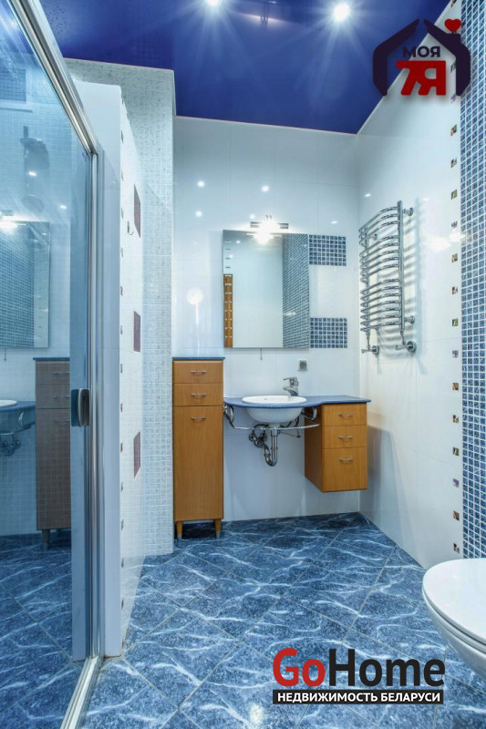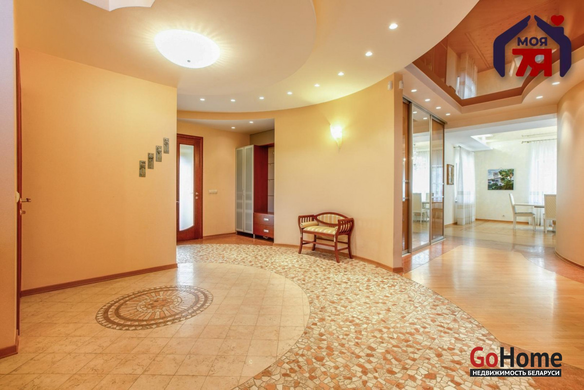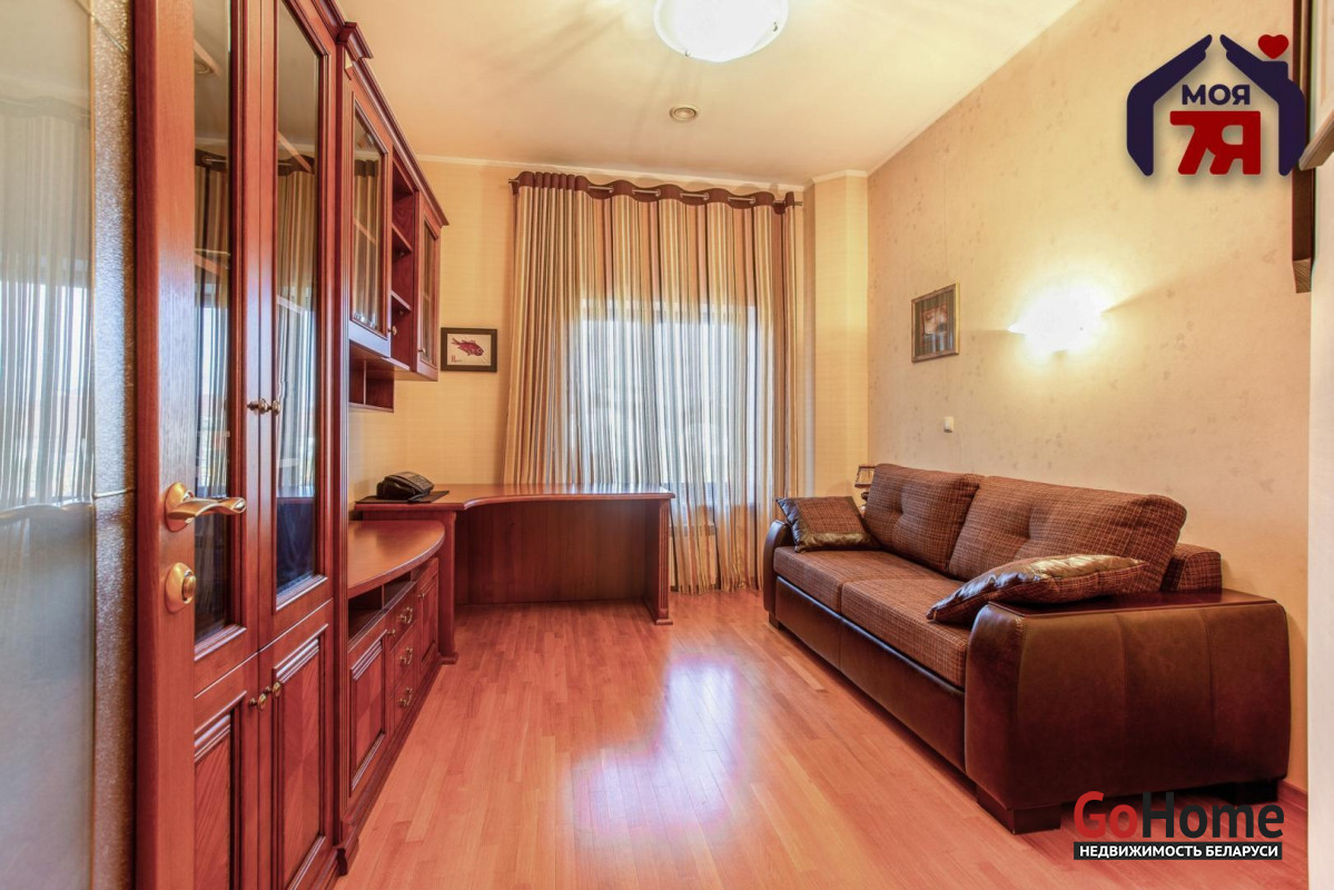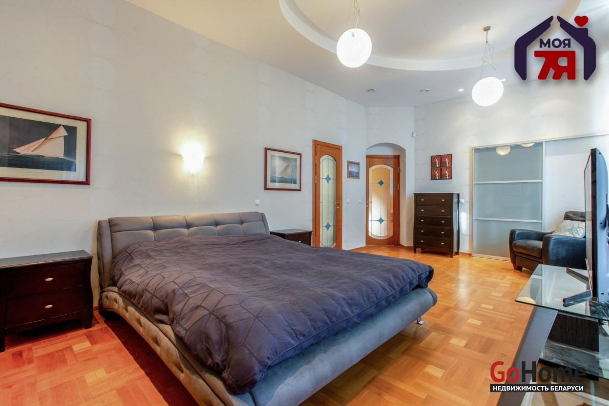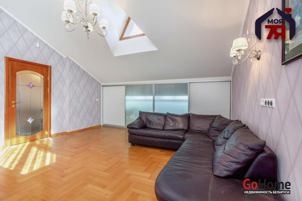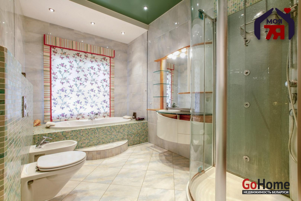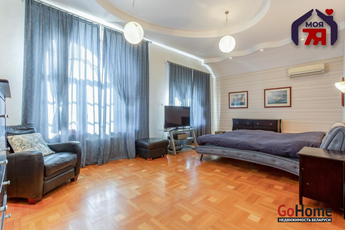 Мечтали о собственном доме в самом экологически чистом районе города Минска с баней и бильярдом? Мечтам свойственно сбываться!️ О Вашем будущем участке:- Удобное расположение участка в живописном месте на тихой улице в 300 метрах от пляжа Цнянского водохранилища. - Участок в 10 соток огорожен по периметру в одном стиле с домом. Благодаря высоким автоматическим воротам, видеонаблюдению на всей территории и охранной сигнализации Вы будете в безопасности. Отличные подъездные пути с асфальтированной дорогой. - Благоустроенная территория, продуманный ландшафтный дизайн: ухоженный газон, декоративные деревья, кустарники, цветы, которые будут радовать Вас своими яркими красками. Аккуратно выложена тротуарная плитка. - Обустроенная зона барбекю позволит собираться с семьей и друзьями как можно чаще, готовить пищу на открытом огне и наслаждаться свежим воздухом. Рядом располагается закрытая терраса - зимний сад, в которой будет комфортно в любой сезон. - На участке расположен 4-этажный дом полностью готовый для проживания! А также гараж на два автомобиля с отдельным входом в дом.️ В каком доме Вы будете жить:- Дом построен в 2008 году по оригинальному дизайн-проекту из газосиликатных блоков, утеплен, оштукатурен и покрашен. Такой дом обладает великолепными теплоизоляционными характеристиками и хорошей звукоизоляцией. - Общая площадь дома составляет 538,4 м2: пять просторных жилых комнат с кондиционерами, большая кухня, гостиная с каминной зоной, 4 санузла и др. Удобная планировка с отлично организованным пространством. Выполнен высококачественный ремонт с использованием качественных и дорогостоящих материалов. - Проведены все необходимые коммуникации: электричество 3 фазы 380 вольт, центральные водоснабжение, канализация. Отопление с помощью дорогостоящего газового оборудования, которое установлено в котельной на цокольном этаже. Центральная воздушная система подает в комнаты очищенный от пыли, свежий воздух, нагретый до заданной комфортной температуры. Везде установлены стеклопакеты ПВХ, теплые полы с итальянской плиткой и паркетом по всей площади. - Дом построен в форме ракушки. Высота потолков 3 метра. - Цокольный этаж. Состоит из отапливаемых помещений: 2 комнаты отдыха, баня с парилкой, тренажёр, русский бильярд, котельная, постирочная, несколько кладовых и хоз. помещений, где будет удобно хранить инструменты, инвентарь, а также овощи, консервации.- На 1 этаже располагаются: просторная кухня, оборудованная всем необходимым (столешница из гранитного камня Аврора, посудомоечная машина, духовой шкаф, микроволновая печь, двухдверный холодильник с морозильной камерой), большая гостиная (60,7 кв.м.) с каминной зоной, где будет одно удовольствие находиться зимними вечерами читая книгу с чашкой чая, санузел с отделкой из итальянской плитки и душевой кабиной.- На 2-ом этаже располагаются: спальни с King-size кроватями, рабочий кабинет с мебелью из дерева и кожаным диваном, 2 санузла, один из них с ванной, душевой кабиной и биде, гардеробные для удобного хранения одежды и обуви. Из жилой комнаты есть выход на балкон, откуда открывается красивый вид на зеленую зону, где Вы сможете наблюдать за красивыми закатами. - Дом находится на непроездной улице в респектабельном окружении и отличными соседями. - Всё, что есть в доме, остаётся с Вами!️ Что будет ряд