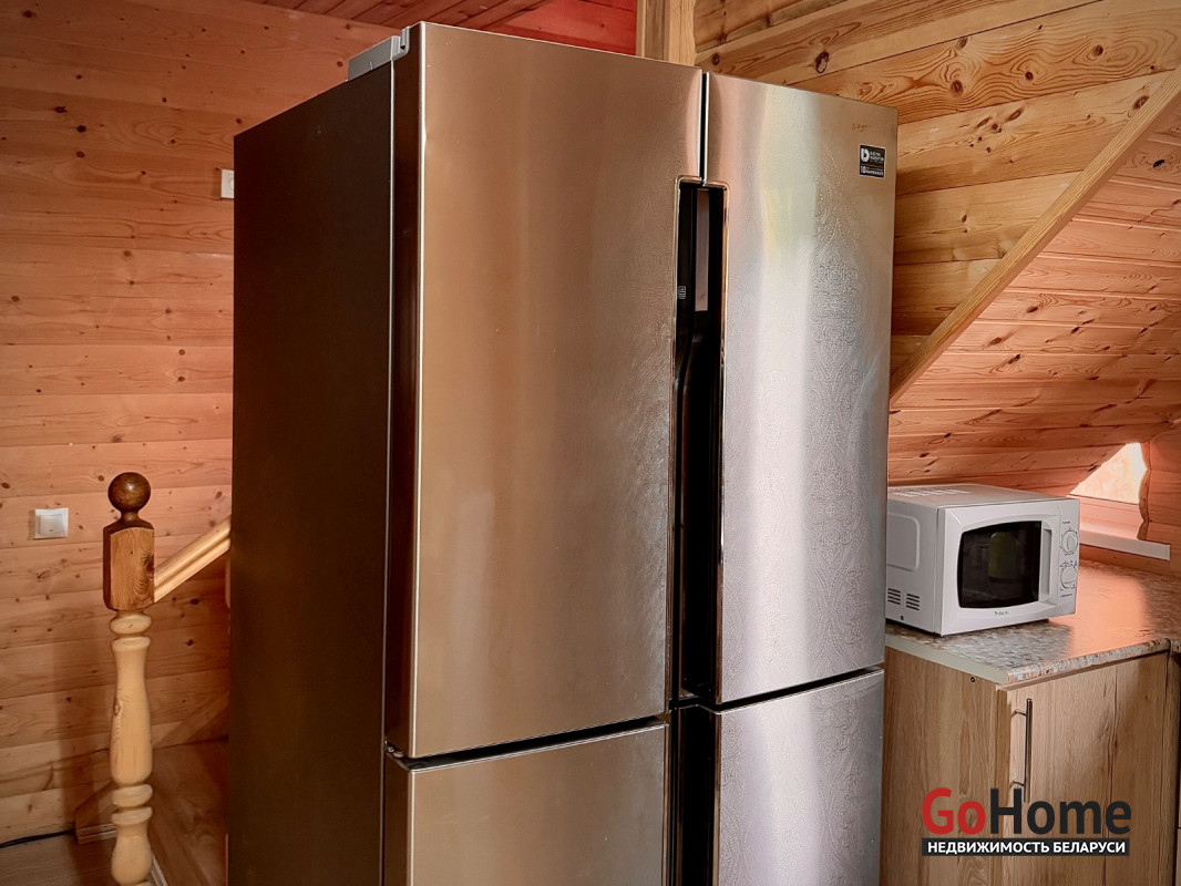 •Ну кухне: большой двухстворчатый холодильник, микроволновка, электрочайник, электроплита, керамическая посуда, бокалы/рюмки