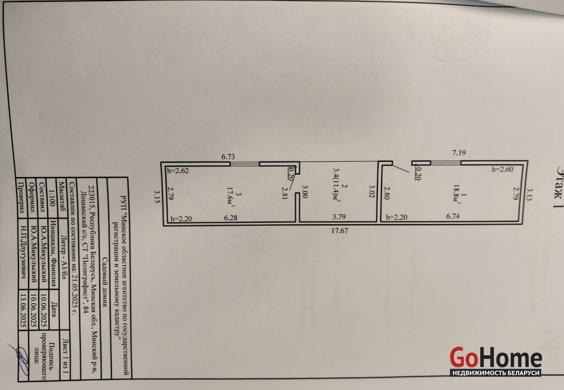 3-комнатная, 69.2/35.8/9.1 м2, (22.19 соток), 1 эт., 1962 г.
