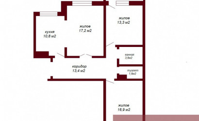 3-комнатная, 69.2/39.6/14.1 м2, Этаж 5 из 5, 1988 г.