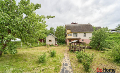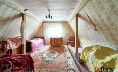 Просторный деревянный дом, обшитый кирпичом общей площадью 102.2м2. Три уровня: цокольный, первый и мансардный этаж. Крыша покрыта шифером, перекрытия дома - стальные рельсы. Внутри дома расположена удобная и безопасная печь для обогрева. Вода сезонная, можно сделать скважину. На придомовой территории расположены отдельно стоящие строения – баня и беседка. Грамотно обустроена планировка дома, достаточно места для большой семьи и приема гостей. В цокольном помещении несколько помещений для мастерской, хранения садового инвентаря, а также для домашних заготовок.