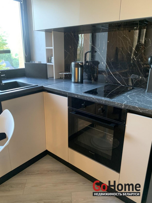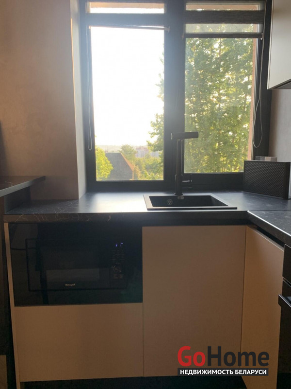 Продается двухкомнатная квартира по адресу: пр-т Черняховского. Квартира расположена на 3 этаже 5-этажного кирпичного дома, построенного в 1963 году. Общая площадь — 44,5 кв.м., кухня — 24,4 кв.м. В квартире проведен капитальный ремонт с перепланировкой, есть все утвержденные проекты переустройства. Квартира шумоизолированная. Электрическая мощность увеличена до 9 кВт, газоснабжение отключено. Теплым пол в прихожей и санузле. Все окна — стеклопакеты, выходят на тихий, зелёный двор и частный сектор на западную сторону. В квартире есть застекленный балкон с тонированными стеклами. Дизайн интерьера выполнен в современном стиле с функциональностью и минимализмом. Кухня оснащена новой бытовой техникой — холодильником, индукционной плитой, духовым шкафом, микроволновой печью, вытяжкой. В гостиной разместился мягкий диван, большой телевизор установленный на стене с декоративной штукатуркой под мрамор, есть вместительный гардеробный шкаф и кондиционер. Санузел совмещенный с душевой кабиной, подвесным унитазом, электрическим полотенцесушителем, вся сантехника от Rehau. Двери скрытого монтажа ведут в спальню с отдельной гардеробной комнатой, в которой зеркало с подсветкой и много места для хранения. В квартире комбинированное освещение — парящие потолки и точечные светильники на кухне, трековый свет в гостиной и прихожей, вечерняя неоновая подсветка в спальне и гостиной, ночники с датчиками движения у входа в спальню и прихожую. У входной двери установлен мастер-выключатель, который отключает свет во всей квартире. Дом расположен в центральной части города, что обеспечивает максимальную удобство и развитую инфраструктуру.