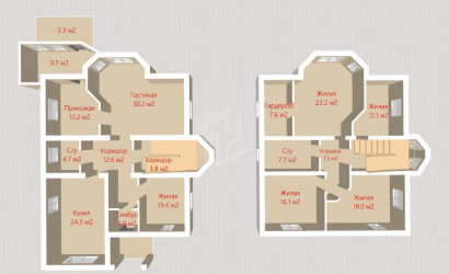 8-комнатная, 265/152/32 м2, (12 соток), 3 эт., 1992 г.