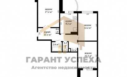 2-комнатная, 51.6/29.2/7.3 м2, Этаж 6 из 9