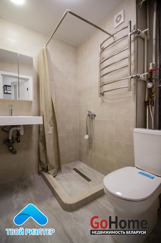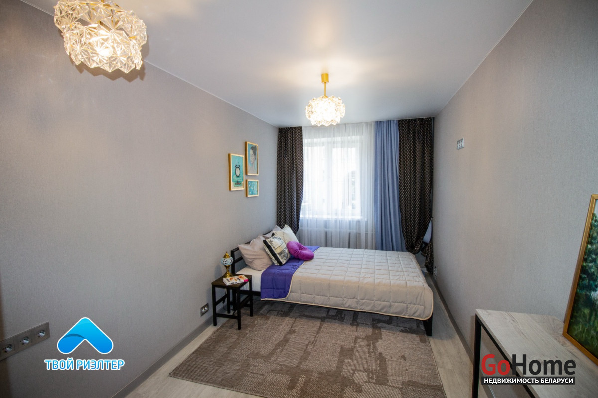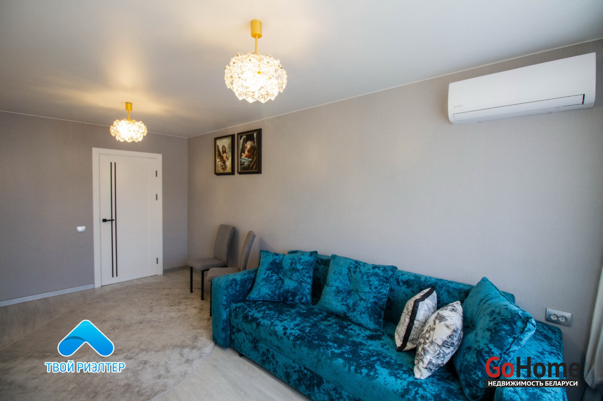 Во всей квартире установлены окна ПВХ, входная металлическая дверь, межкомнатные двери шпон, на полу уложен ламинат и плитка. Новая электрика, новая сантехника. Газовая колонка. В квартире никто не проживал. Квартира полностью меблирована, остаётся вся техника, кондиционер.