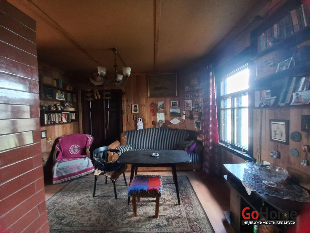 Жилая часть дома отапливается печкой. В кухню заведена вода от центрального водопровода, установлен водонагреватель. Вода заведена так же и в баню. Канализация выведена, местная.Участок находится в частной собственности, ровный, огорожен сеткой. Кроме дома, на участке расположены баня с бассейном и сан.узлом, сарай и колодец, произрастают плодово-ягодные деревья и кустарники.Граничи - агрогородок с хорошо развитой инфраструктурой - школа, дет.сад, поликлиника, почта, 2 магазина.Отличное транспортное сообщение с Минском - остановка для автобусов и маршрутных такси рядом с домом.До гп. Радошковичи 10км, до гидропарка Сосновый Бор с удивительно красивым озером, речными каналами, водопадами, с беседками и катамаранами - 4 км.Звоните, записывайтесь на просмотр, торг уместен!