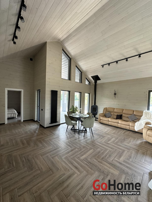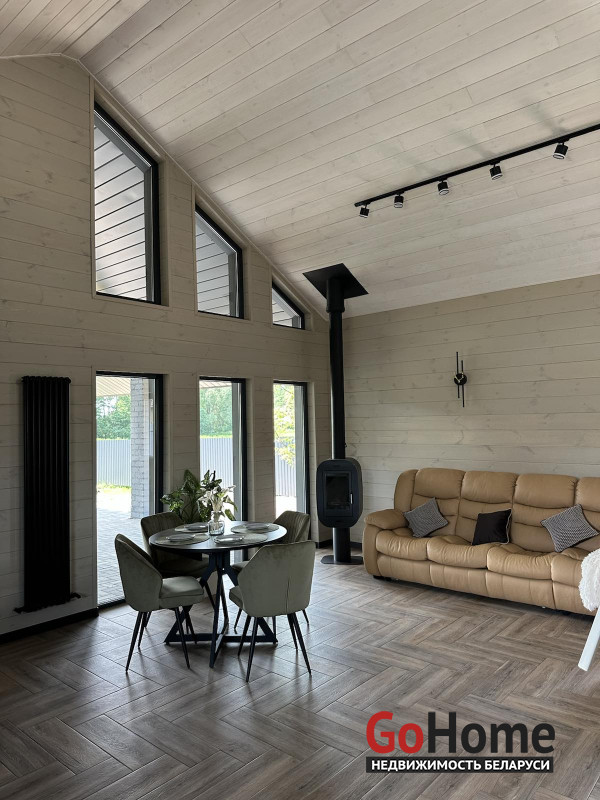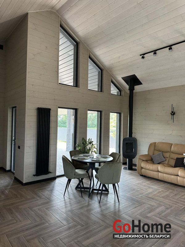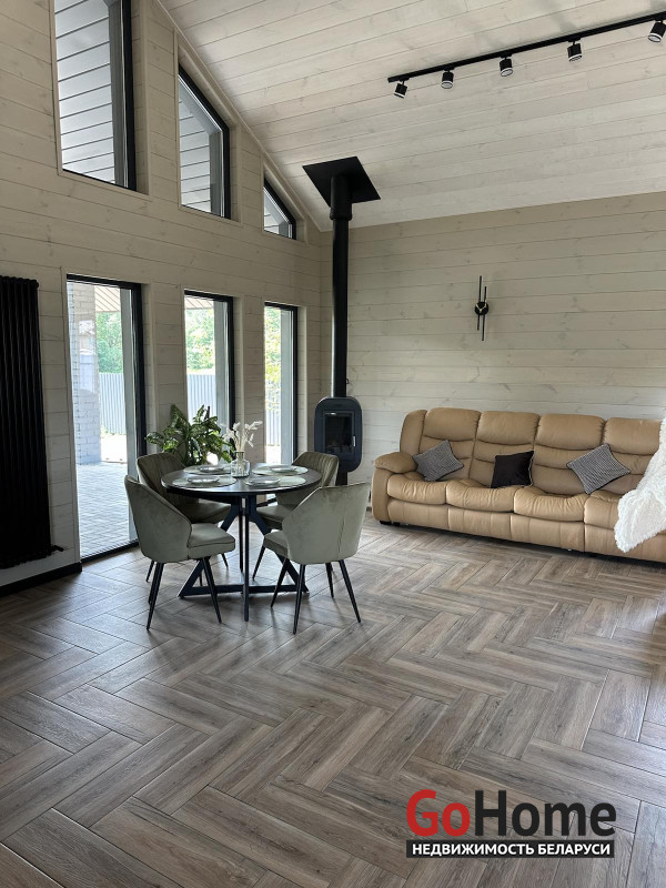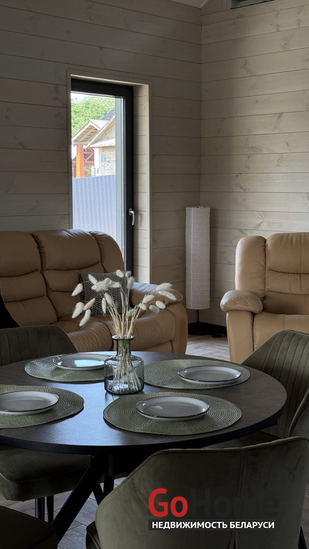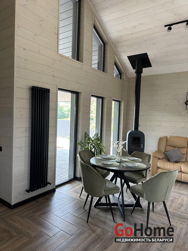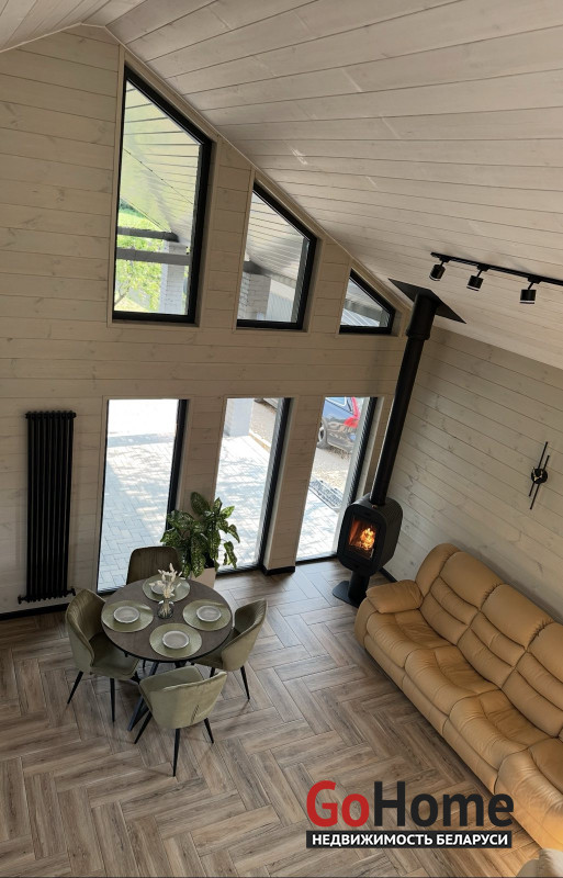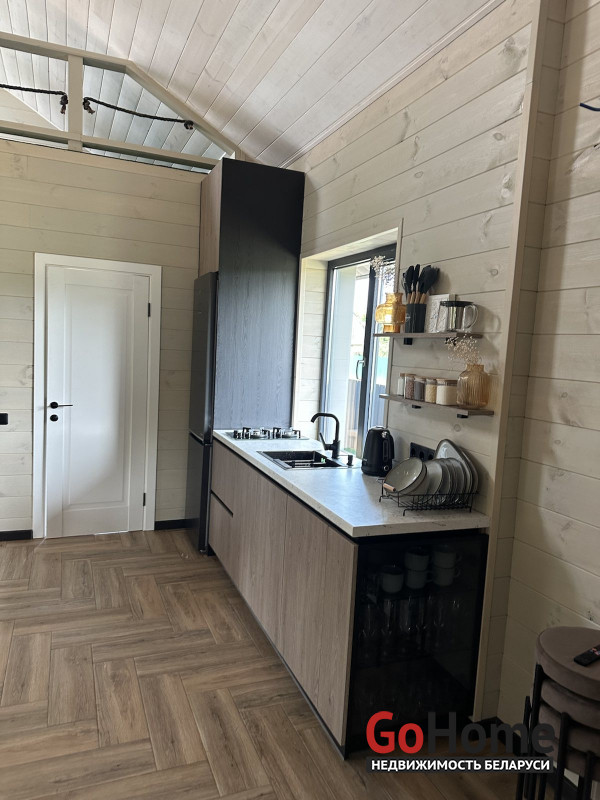Внутри дома созданы все условия для комфортного отдыха: на первом этаже расположены две отдельные комнаты — идеальные для личного пространства, а также кухня и ванная комната. В просторной гостиной с камином можно провести уютный вечер в тепле, наслаждаясь беседой или чтением книги.