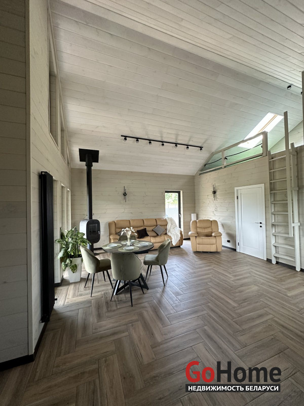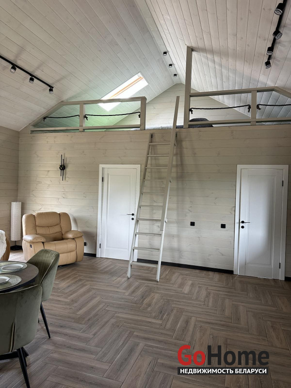 На антресоли находится открытая комната с панорамным окном, через которое открывается захватывающий вид на окружающую природу — место для вдохновения и отдыха. Каждая деталь дома продумана так, чтобы вы чувствовали себя как дома: комфортно, спокойно и вдохновенно.
