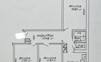 3-комнатная, 54.2/41.3/5.7 м2, Этаж 4 из 4, 1963 г.